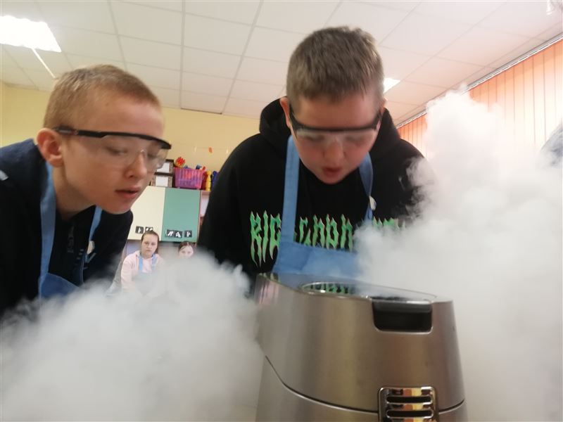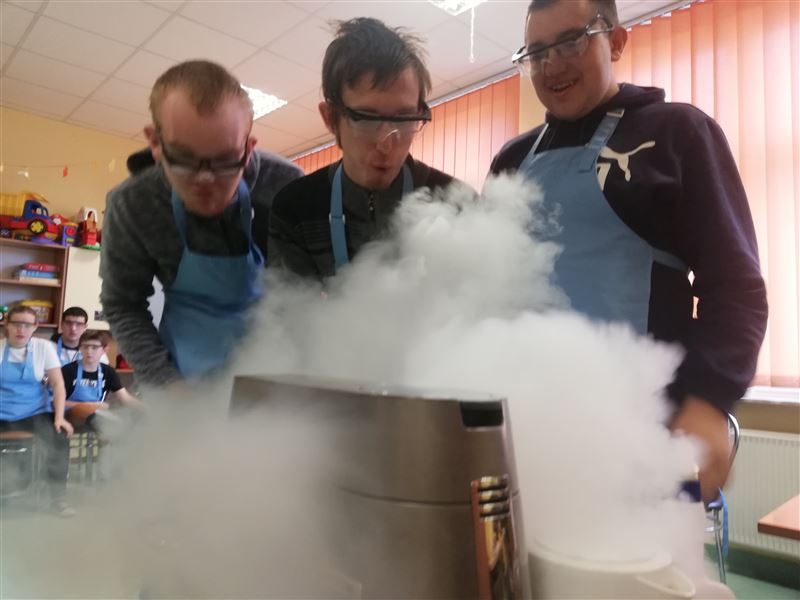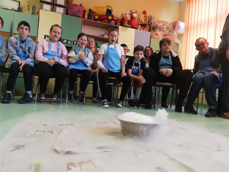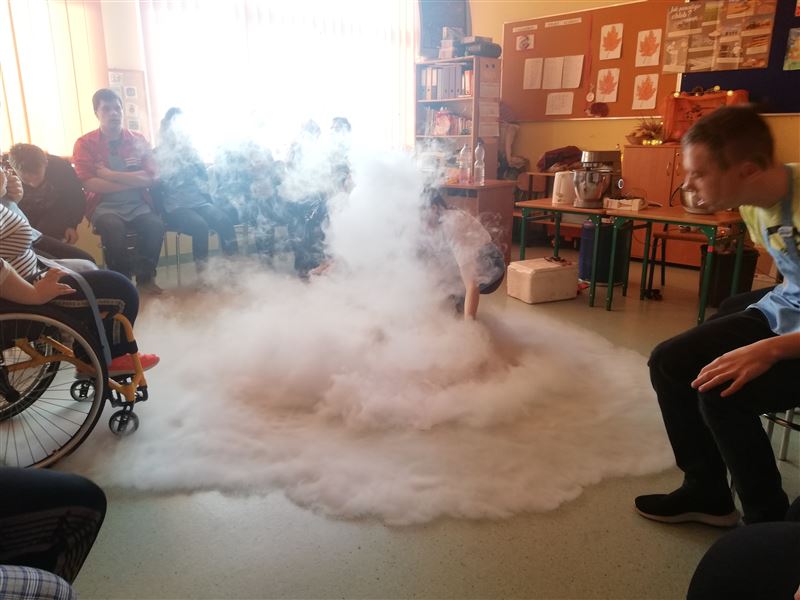 W listopadzie, w Zespole Szkół Specjalnych w Erminowie, odbyły się warsztaty z kuchni molekularnej. Uczniowie wcielili się w role naukowców i za pomocą wielu eksperymentów odkrywali właściwość suchego lodu i ciekłego azotu.