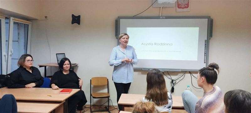 W ostatnich dniach asystenci rodzinni Marlena Hoyer i Martyna Machcińska wraz z specjalistą pracy z rodziną Justyną Citko z Centrum Usług Społecznych w Sochaczewie przeprowadzili prelekcję z wychowankami Młodzieżowego Ośrodka Wychowawczego w Załuskowie. Spotkanie odbyło się w ramach innowacji pedagogicznej „Droga do sukcesu, czyli jak wybrać dobry zawód”, którego koordynatorem są Izabela Durka, Edyta Górecka oraz Żaneta Kamińska. Tematem była praca asystenta rodzinnego. Pogadanka rozpoczęła się od przedstawienia przepisów prawa, które wprowadziły do pomocy społecznej taką osobę jak asystent rodziny. Wykorzystano prezentację multimedialną dzięki której wychowanki między innymi mogły zobaczyć, jakie wykształcenie należy zdobyć, aby mogły wykonywać wymieniony zawód. Omówiono zadania asystenta rodziny wynikające z Ustawy z dnia 9 czerwca 2011r. o wspieraniu rodziny i systemie pieczy zastępczej (z późniejszymi zmianami). Wśród obowiązków asystenta jest jedno najważniejsze a mianowicie, wszechstronna pomoc rodzinie ukierunkowana na wdrażanie prawidłowych postaw życiowych wszystkich jej członków. Asystent to przyjaciel rodziny. Panie pokazały także, że praca zawodowa to nie tylko obowiązki, ale także przyjaźnie i wspólnie spędzany czas wolny np. na wycieczkach. Na koniec prowadzące spotkanie asystentki rodziny odpowiadały na zadawane pytania, których było dużo. Zainteresowanie wychowanek ośrodka zaowocuje kolejnymi spotkaniami i zajęciami.