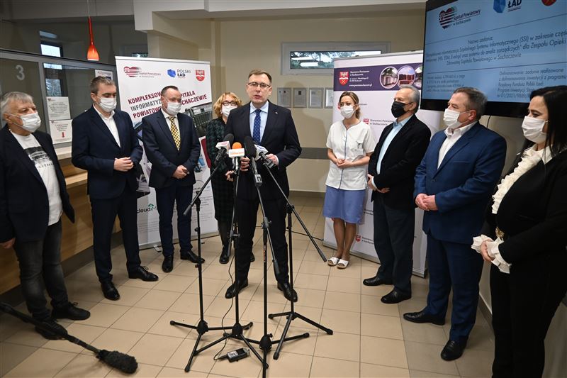 W sochaczewskim szpitalu w sobotę, 3 grudnia podsumowano zakończenie procesu kompleksowej informatyzacji. Cyfryzacja Zespołu Opieki Zdrowotnej Szpitala Powiatowego w Sochaczewie to ważny krok w drodze do zwiększenia jakości świadczonych usług medycznych. Już przynosi bardzo wymierne korzyści tak pacjentom, jak i personelowi. Inwestycja kosztowała 4 799 460,00 zł. Realizacja tego projektu była możliwa dzięki dofinansowaniu w wysokości 4 319 514,00 zł ze środków pochodzących z Rządowego Funduszu Polski Ład. Wykonawcą była firma CloudiMed Sp. z o.o. O tym, jak ważna jest to inwestycja mówili m.in. minister Maciej Małecki, starosta Jolanta Gonta podczas briefingu prasowego.