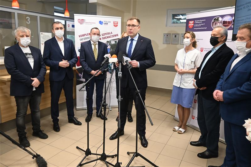 - Zakończyła się kolejna, ważna inwestycja w sochaczewskim szpitalu. Nowoczesny system informatyczny ułatwi pracę lekarzom i pielęgniarkom. Więcej czasu będą mogli poświęcić pacjentom, a mniej na sprawy „papierowe”. Sochaczewski szpital znalazł się w jednym systemie z wiodącymi szpitalami w kraju. Pacjenci nie będą musieli nosić ze sobą wyników badań i lekarskich zleceń, bo to będzie dostępne w systemie. Pacjenci zyskali też internetową możliwość zapisu do szpitalnych poradni bez wychodzenia z domu. Inwestycję zaczynaliśmy w maju, gdy przekazywałem promesę rządowej dotacji. Cyfryzacja szpitala kosztowała prawie 5 mln zł - ponad 4,3 mln zł przekazał rząd Prawa i Sprawiedliwości z programu Polski Ład, pozostała kwota to wsparcie samorządu powiatu. Dziękuję staroście Jolancie Gonta, radnym powiatu, dyrekcji i pracownikom szpitala za bardzo dobrą współpracę w tej ważnej dla naszych mieszkańców sprawie – mówił m.in. podczas spotkania w szpitalu M. Małecki.