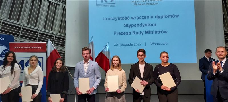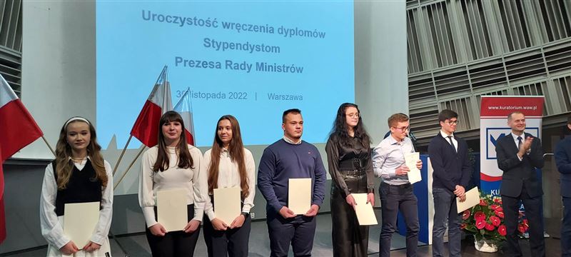 Stypendia naukowe wyróżniają uczniów najlepszych. Ich rolą jest nagradzanie wysiłku młodych ludzi oraz motywowanie do uzyskiwania najwyższych wyników w nauce i rozwoju osobistego w wybranej przez siebie dziedzinie, zgodnie z ugruntowanymi pasjami i zainteresowaniami. Dobre programy stypendialne wspierają rozwój stypendystów. Stypendyści podnoszą prestiż szkoły, z kolei szkoła pełni rolę wspierającą w zdobywaniu przez nich wiedzy, umiejętności i kompetencji, potrzebnych w budowaniu przyszłej kariery naukowej i zawodowej. Tym bardziej cieszy fakt, że w bieżącym roku szkolnym duża grupa uczniów „Iwaszkiewicza” została wyróżniona stypendiami za wybitne wyniki w nauce. Najważniejsze wyróżnienie - stypendium Prezesa Rady Ministrów otrzymali Aleksandra Jaworska z Liceum Ogólnokształcącego oraz Damian Pisarek i Mateusz Tymorek z Technikum. Stypendyści odebrali stypendia w Menadżerskiej Akademii Nauk Stosowanych w Warszawie z rąk Mazowieckiego Kuratora Oświaty 30 listopada 2022 roku. Stypendium przyznane jest na cały rok szkolny 2022/2023. W październiku br. starosta sochaczewski - Jolanta Gonta przyznała 19 uczniom naszej szkoły stypendia za wybitne wyniki w nauce. Otrzymali je: Maja Miecznikowska, Filip Kiełbasa, Paulina Ambroziak, Julia Fabisiak, Julia Kwiatkowska, Julia Woźniak, Maciej Księżak z Liceum Ogólnokształcącego oraz Daria Marzęcka, Kamila Lisowska, Nikola Ufa, Zuzanna Zięcina, Zuzanna Skrzypczuk, Daria Kowalska, Jakub Błaszczyk Mikołaj Stępniak, Patrycja Hupert, Gabriela Kapler, Zuzanna Czekała, Patrycja Mezińska z Technikum. Stypendyści będą otrzymywali stypendium przez pierwszy semestr roku szkolnego 2022/2023. Wszystkim stypendystom, ich rodzicom i nauczycielom serdecznie gratulujemy i życzymy dalszych sukcesów edukacyjnych.