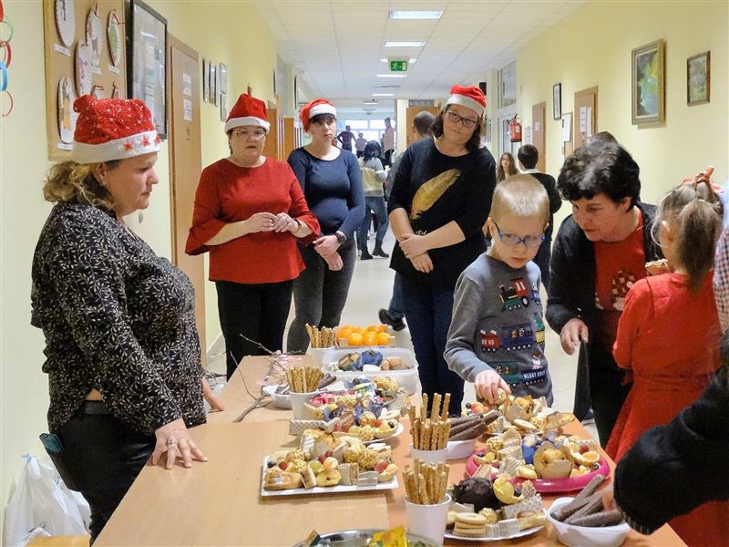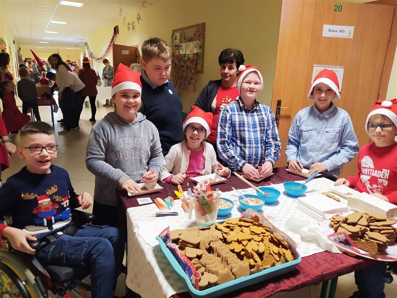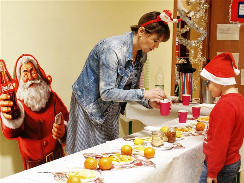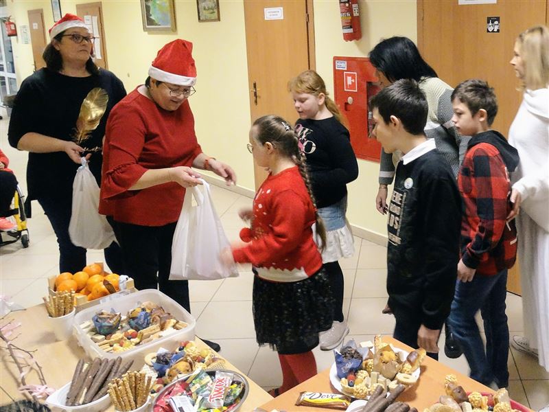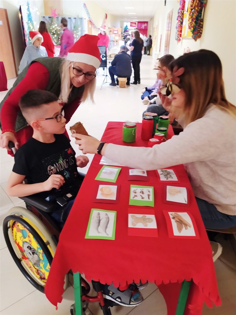W Zespole Szkół Specjalnych w Erminowie, 6 grudnia zapanowała świąteczna atmosfera. Dzieci i młodzież wzięły udział w zabawie muzyczno-ruchowej metodą Batti Strauss- "Świąteczne Prezenty", wesoło bawiły się pokonując "Świąteczny Tor Przeszkód". Uczestniczyli w "Zabawie Fantowej". Aby poczuć magię świąt uczniowie doświadczali sensorycznie, powstało stoisko "Świąteczne Zapachy" - zagadki zapachowe zamknięte w słoiczkach. "Pudełko Sensoryczne" , gdzie uczniowie zgadywali jakiego przedmiotu związanego z świętami dotykają. Ćwiczyli swoją celność i zwinność biorąc udział w grach " Wesołe Renifery" i "Świąteczna Pajęczyna". Uczniowie z entuzjazmem dekorowali pachnące pierniczki lukrem i kolorowymi posypkami, tworząc piękne kompozycje. Na naszych uczniów czekały również "Zimowe herbatki", które mogli kosztować tworząc swój przepis dobierając dodatki w postaci : imbiru, limonki, cytryny, pomarańczy, pigwy, miodu. W studiu fotograficznym powstałym w naszej szkole w którym gościł przybyły z Laponii Święty Mikołaj uczniowie otrzymywali upominki mikołajkowe i brali udział w sesji zdjęciowej. Rada Rodziców przygotowała pierniczki, balony, poczęstunek oraz paczki z prezentami. Pani dyektor i wicedyrektor wręczyły nagrody dla każdej klasy za udział w konkursie szkolnym "Najdłuższy łańcuch choinkowy". Najdłuższe łańcuchy wykonała klasa
