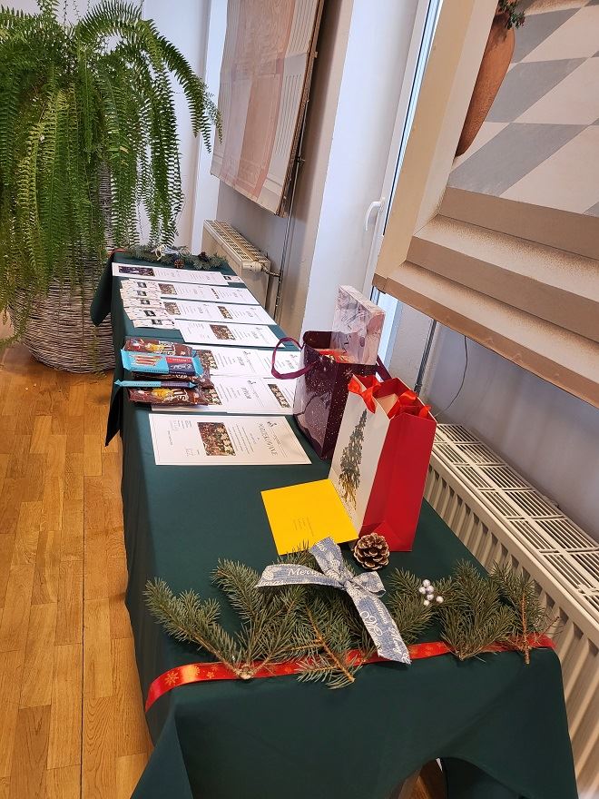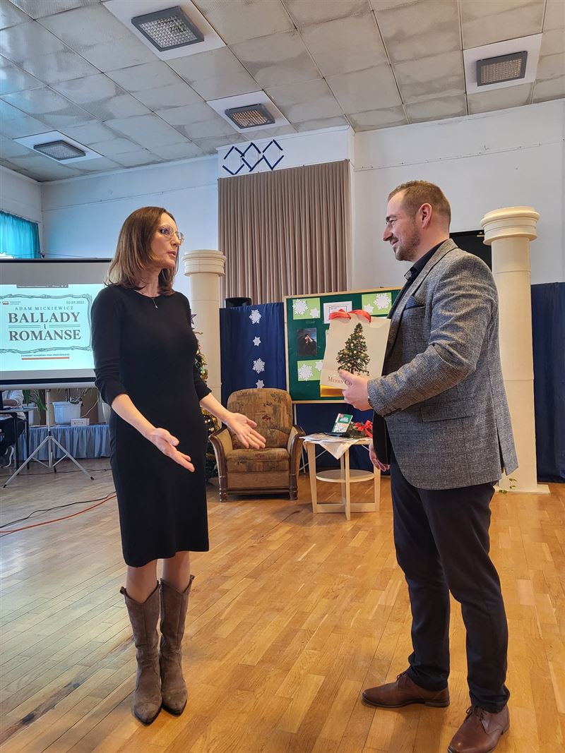 Na zakończenie uroczystości Dyrektor Krzysztof Paradowski i organizatorki konkursu na najpiękniejszą ozdobę bożonarodzeniową Katarzyna Wróbel i Ewelina Nosarzewska wręczyli nagrody ufundowane przez Radę Rodziców.