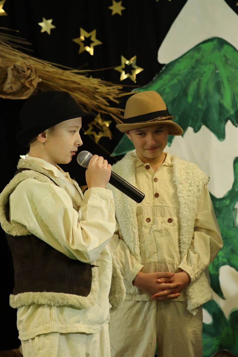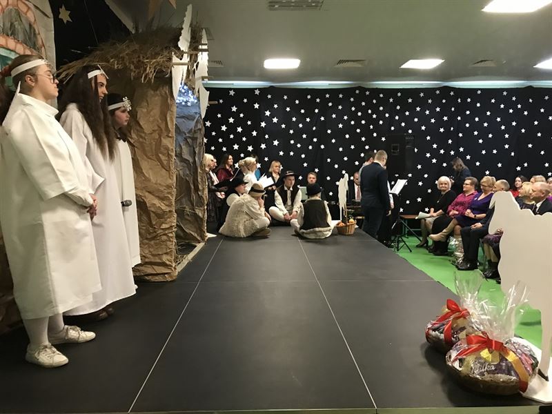 Dnia 21 grudnia szkolni aktorzy świetnie i z ogromnym zaangażowaniem wcielili się w swoje role, przypominając w ten sposób wydarzenia sprzed ponad dwóch tysięcy lat, kiedy to w Betlejem narodziło się Boże Dzieciątko. Dzieci wcieliły się w rolę Maryi, Józefa, pasterzy, aniołów i trzech króli oraz dzieci, przybywających złożyć pokłon Jezusowi narodzonemu w ubogiej stajence. Świetności inscenizacji dodały pastorałki, kolędy, które napełniły wszystkich świąteczną radością i sprawiły, że poczuliśmy magię zbliżających się świąt.