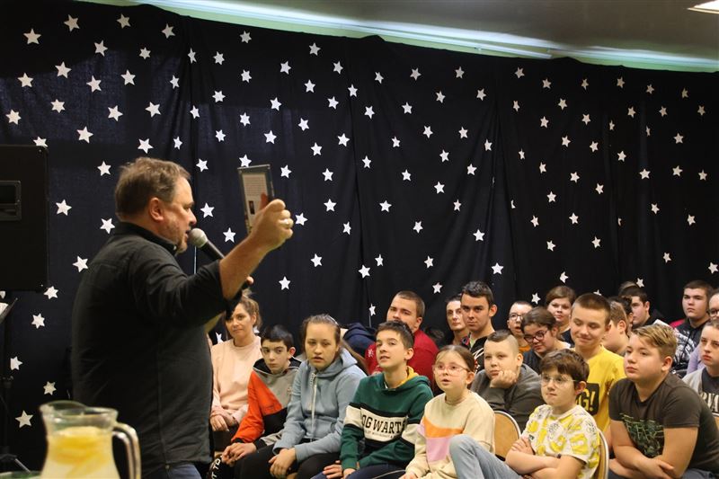 W naszej szkole każda wizyta pana Grzegorza to prawdziwe święto i wielka radość, bo odwiedza nas wspaniały, uśmiechnięty człowiek i autor najlepszych książek dla dzieci.