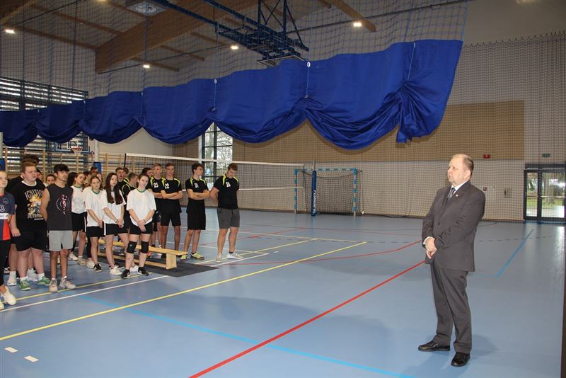 - Bardzo się cieszę, że aż tyle zawodniczek i zawodników staje na starcie turnieju, którym otwieramy sportowe wydarzenie w tym nowym, pięknym obiekcie. Zarząd Powiatu zawsze wspiera aktywność młodzieży, tym bardziej jeśli chodzi o tego typu przedsięwzięcia. Życzę wam wspaniałych emocji, zaciętych pojedynków pamiętając oczywiście o zasadach fair-play. Niech wygrają najlepsi. Już dziś wierzę, że zawodów sportowych w tym miejscu będzie jak najwięcej i będziecie tu często gościć, bo po to wybudowaliśmy tę halę sportową, by tętniła sportowym życiem – zwracał się do szkolnych reprezentacji wicestarosta T. Głuchowski. W otwarciu inauguracyjnego turnieju towarzyszyli mu m.in. Urszula Opasiak – dyrektor Powiatowego Zespołu Edukacji, Marcin Odolczyk – dyrektor Wydziału Promocji, Kultury i Sportu w Starostwie Powiatowym i oczywiście jako gospodarz obiektu – Julia Jakubowska, dyrektor ZS CKP, która przywitała wszystkie grupy.