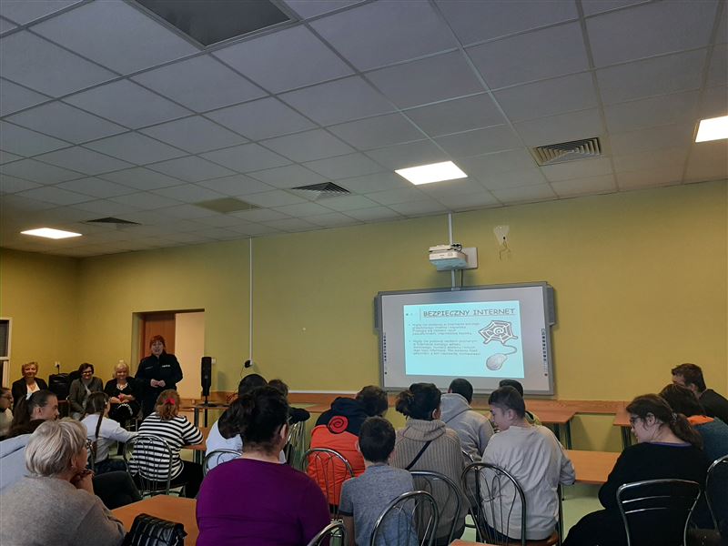 Oprócz bezpieczeństwa w okresie zimowym spotkanie poświęcone było również bezpieczeństwu w Internecie. Pani sierżant, Milena Godos, przypomniała uczniom zasady korzystania z Internetu i uwrażliwiła na zagrożenia związane z mediami społecznościowymi i kontaktami on-line.
