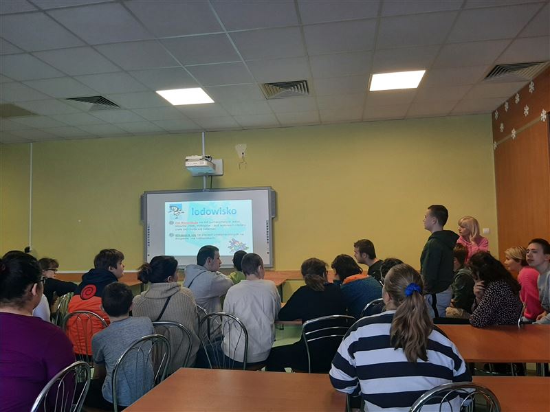 W Zespole Szkół Specjalnych w Erminowie na początku lutego odbyło się spotkanie z sierżant sztabową, Mileną Godos, z Zespołu da Profilaktyki Społecznej Nieletnich i Patologii. Uczniowie aktywnie wysłuchali i obejrzeli prezentację dotyczącą bezpieczeństwa podczas wypoczynku zimowego. Pani policjantka szczegółowo omówiła zagrożenia związane z przebywaniem w różnych miejscach poza domem, zwróciła uwagę na kontakty z nieznajomymi. Żywa, kolorowa, dynamiczna prezentacja bardzo spodobała się naszym uczniom.