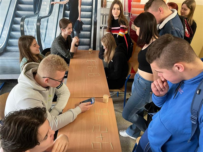 W ZS CKP, z inicjatywy pani Grażyny Mroczkowskiej, cyklicznie organizowany jest Dzień Matematyki (przed rokiem 2019 – Święto Liczby Pi), podczas którego pasjonaci królowej nauk starają się przekonać swoje koleżanki i kolegów, że matematyka nie musi być nudna i trudna, a wręcz przeciwnie – może stać się fascynującą przygodą, nawet dla osób, które nie są uzdolnione matematycznie. 14 marca korytarz na pierwszym piętrze stał się miejscem, w którym zainteresowani uczniowie mogli obejrzeć prezentację pod tytułem „Matematyka łączy”, przygotowaną przez uczniów klasy 3et, zmierzyć się z zagadkami matematycznymi i wymienić własnymi spostrzeżeniami. Prezentacja została podzielona na 3 obszary – liczba π, ciekawostki i fakty o Pitagorasie oraz memy matematyczne. Wydarzenie cieszyło się nie tylko dużym zainteresowaniem młodzieży szkolnej, ale również nauczycieli. Niektórzy z nich także postanowili sprawdzić swoje matematyczne umiejętności i razem z uczniami przystąpili do rozwiązywania zadań i zagadek. Zadania, które cieszyły się największą popularnością polegały na ćwiczeniu logicznego myślenia. Wykorzystane zostały w nich zapałki, które należało przełożyć wykonując jeden lub dwa ruchy, tak by otrzymać poprawny wynik. Zadania, z którymi mierzyli się uczestnicy Dnia Matematyki zostały stworzone przez Stowarzyszenie Doskonalenia i Rozwoju 4improve i są dostępne na stronie https://e-math.pl Zachęcam do zerknięcia i ćwiczenia matematycznych umiejętności, które przydatne są każdemu w codziennym życiu.