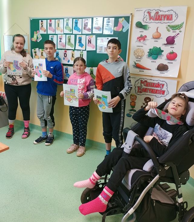 W ramach projektu „Każdy inny- wszyscy równi” w Zespole Szkół Specjalnych w Erminowie z okazji Światowego Dnia Zespołu Downa uczniowie klasy 4um-6um na znak solidarności z osobami z Zespołem Downa założyli kolorowe skarpetki nie od pary oraz zaprojektowali własne niesamowite skarpetki!