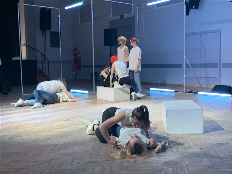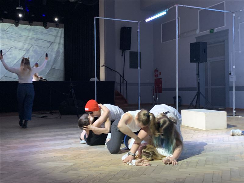 Druga część spektaklu pokazała rodzinę, w której młody człowiek jest zagubiony, pozbawiony oparcia, pomocy, jest zdany wyłącznie na siebie. Atakowany przez szkołę i dom stara się wykrzyczeć swój ból. Ze sceny padały w tej części spektaklu przekleństwa, młodzi ludzie w ten sposób okazywali swoje emocje. Swój strach i swój ból.