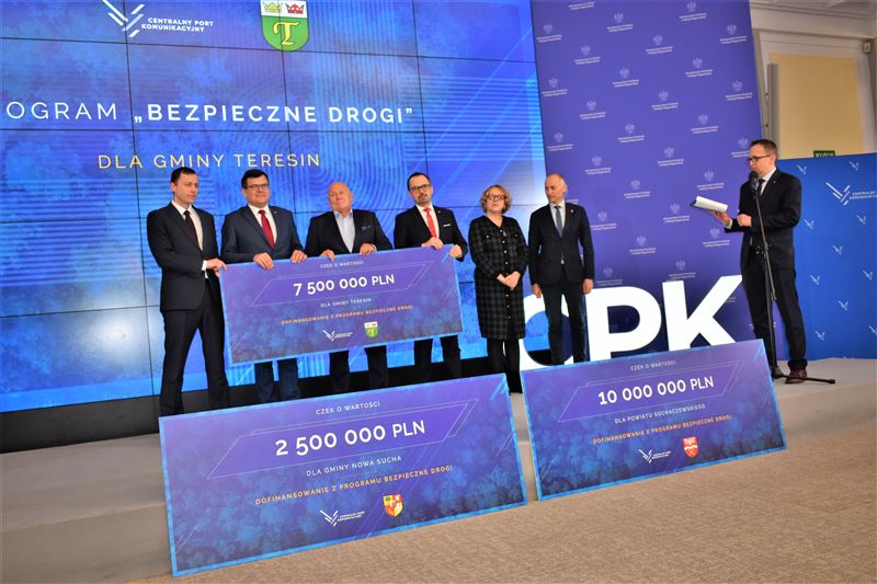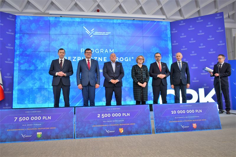 Spółka Centralny Port Komunikacyjny podpisała w środę, 12 kwietnia w Warszawie umowy z 13 samorządami w ramach programu „Bezpieczne Drogi”. Wśród nich jest sochaczewski samorząd powiatowy. Celem projektu jest poprawa stanu bezpieczeństwa ruchu drogowego, w szczególności pieszych i rowerzystów. Program wyniesie blisko 80 mln zł i pozwoli sfinansować ponad 40 projektów.