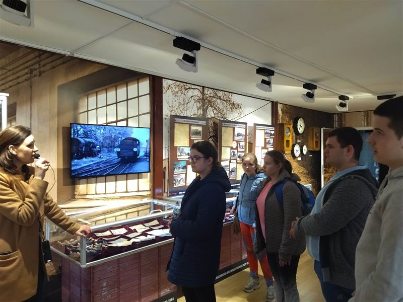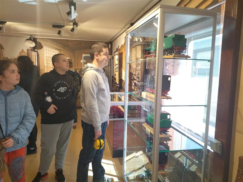 Na zakończenie zwiedziliśmy jeszcze wystawę w salach Muzeum oraz uruchomiliśmy makietę kolejki. Miłośnicy pamiątek odwiedzili również sklepik muzealny.