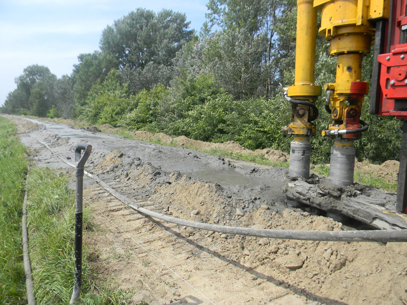 Wykonano również dodatkowe roboty uzupełniające tj. przesłony DSM na głębokości 12m na odcinku 208mb - 150m w Kępie Karolińskiej i 58mb w Kamionie.