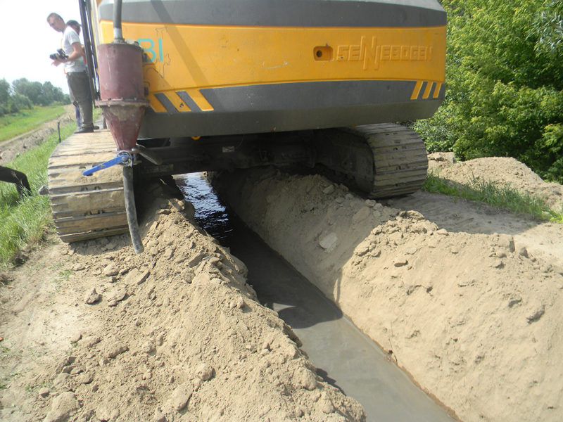 Nie obyło się jednak bez niespodzianek, które pojawiły się w trakcie prac. Na długości 424 m. zamiast przesłony w osi wału metodą DSM (wiertnic) musiano użyć w stopie wału metodę szczelinową na głębokości 7 m wraz z ułożeniem bentomaty na skarpie. Przyczyną zmiany technologii było zaleganie bardzo dużej warstwy kamieni i głazów na głębokości ok. 3m pod wałem.
