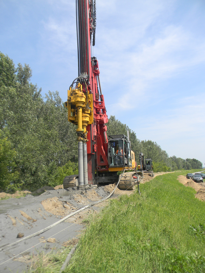 W ramach tego zadania zastosowano metodę DSM polegającą na wykonywaniu w osi wału wierceń specjalnymi wiertnicami do głębokości 12 m i mieszaniu rodzimego gruntu z dostarczaną pod ciśnieniem zawiesiną cemento-bentonitu z wodą. Powstała dzięki temu szczelna ściana z tzw. cemento-gruntu o grubości 60cm. Ma ona za zadanie wyeliminowanie przesiąków przez wał oraz pod wałem w miejscach najwrażliwszych, które zostały wybrane w wyniku wieloletnich obserwacji i badań. Prace w ramach tej inwestycji dotyczyły również remontu nawierzchni dróg przy wałowych na łącznej długości 353 m.