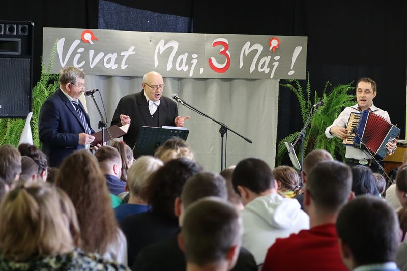W programie usłyszeliśmy poezję oraz pieśni i utwory muzyczne o charakterze patriotycznym. Panowie sięgnęli do twórczości Chopina, Ogińskiego oraz skarbnicy polskiej pieśni narodowej. Wsłuchaliśmy poezję i prozę związaną z naszą historią. Przypomniane zostały słowa naszego patrona ks. Jana Twardowskiego oraz św. Jana Pawła II i bł. Stefana kard. Wyszyńskiego.