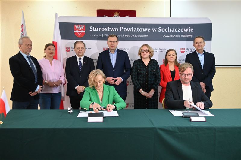 Podpisy pod umową złożyli: Małgorzata Dębowska, dyrektor Powiatowego Zarządu Dróg i Paweł Tecław, współwłaściciel firmy Trakt. W briefingu prasowym uczestniczyli także Maciej Małecki, wiceminister Aktywów Państwowych; Jolanta Gonta, starosta sochaczewski i Tadeusz Głuchowski, wicestarosta; Piotr Osiecki, burmistrz Sochaczewa; Anna Pawłowska i Bogumił Czubacki – członkowie Zarządu Powiatu a także Selena Majcher, radna miejska.