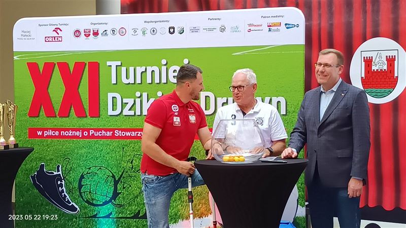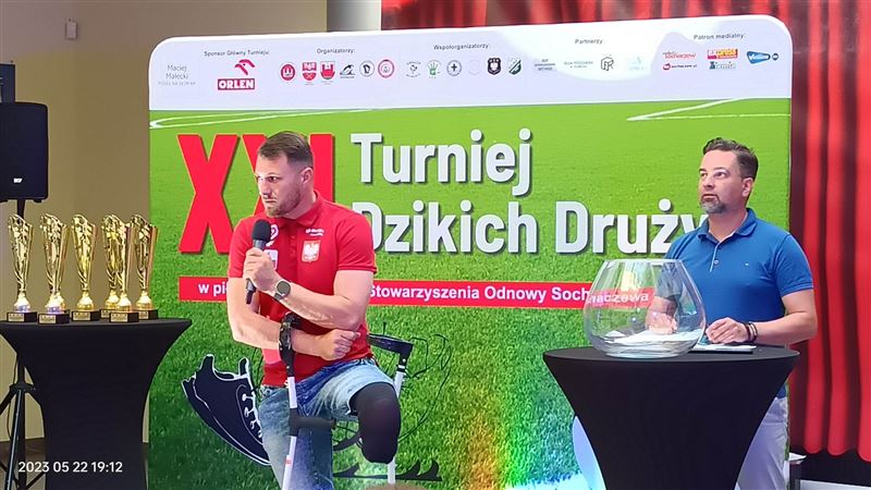 Już w najbliższą sobotę, 27 maja na boiskach w Chodakowie rozegrane zostaną mecze piłkarskie 21. Turnieju Dzikich Drużyn o Puchar Stowarzyszenia Odnowy Sochaczewa „Zamek”. Tymczasem w miniony poniedziałek w Kramnicach Miejskich w Sochaczewie odbyło się uroczyste rozlosowanie zespołów do poszczególnych grup. Gościem specjalnym wydarzenia był Marcin Oleksy, reprezentant Polski w amp futbolu, autor najpiękniejszego strzelonego gola na świecie w rankingu FIFA Puskas Award. Wspólnie z twórcą TDD – posłem Maciejem Małeckim i sędzią głównym zawodów Zenonem Grąbczewskim dokonali losowania, w czym pomagali też im uczestnicy turnieju i przybyli na uroczystość goście. Emocjonujący event poprowadził spiker turnieju Marcin Odolczyk.