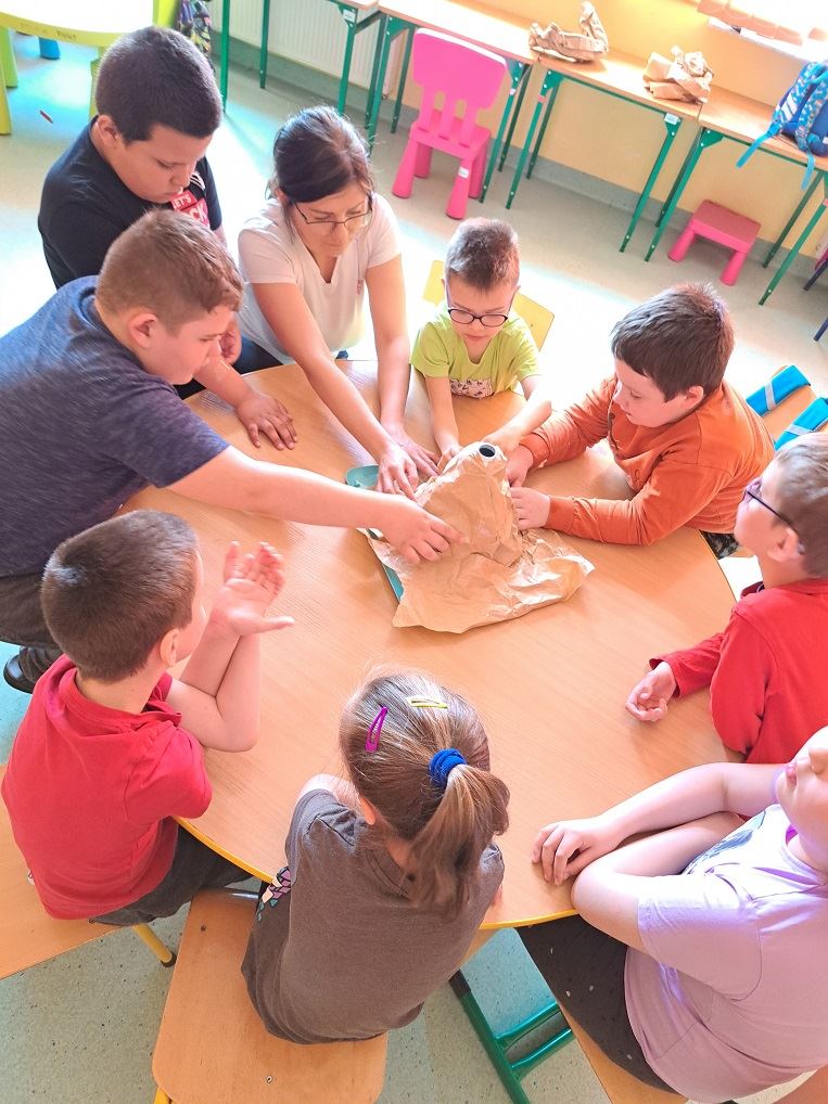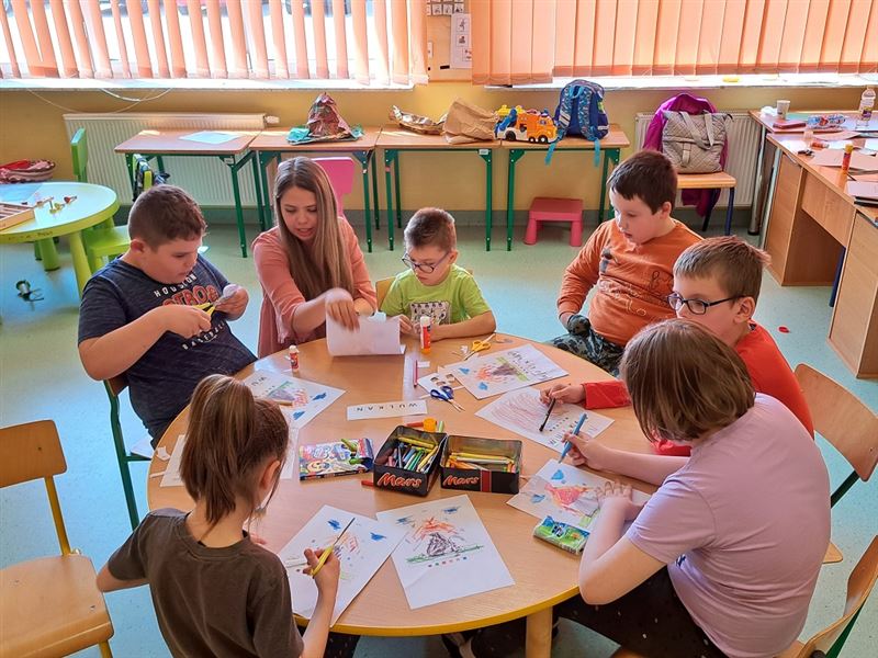 Przedszkolaki i klasa 1aul-2aul-3aul z Zespołu Szkół Specjalnych w Erminowie wzięły udział we wspólnych zajęciach – warsztatach, których tematem był WULKAN.