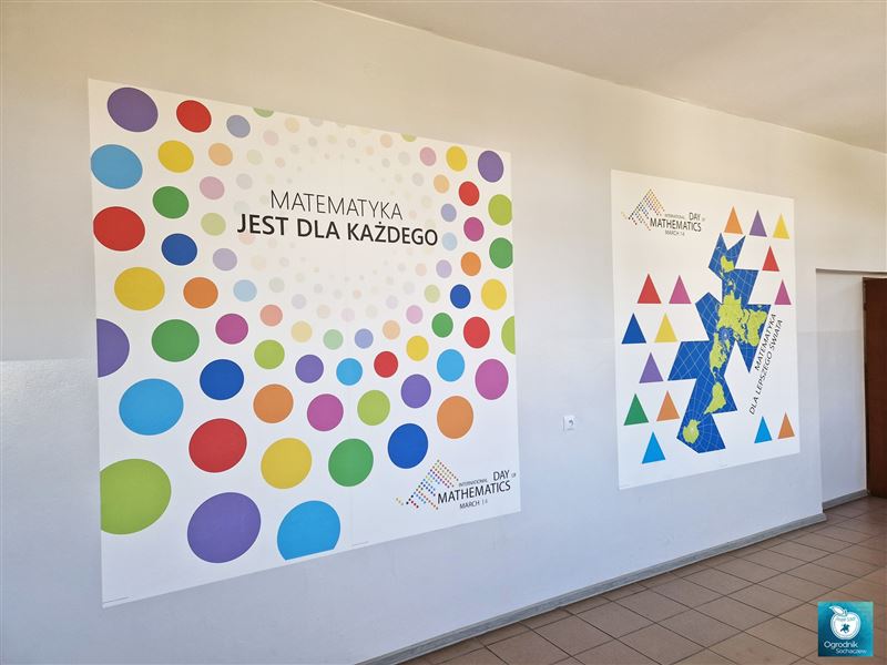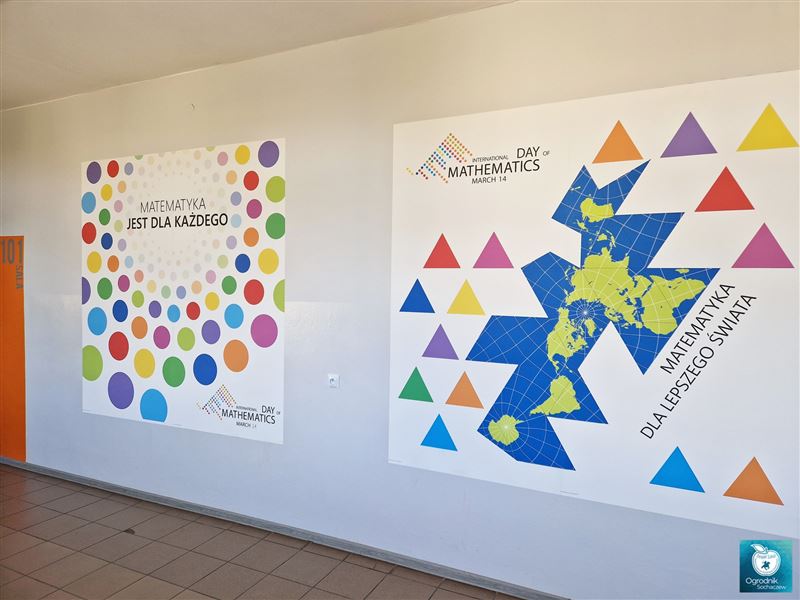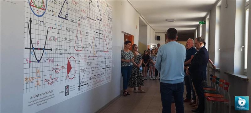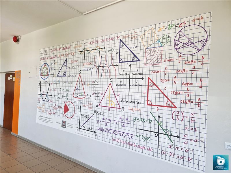 Tym razem na piętrze szkoły, przy salach matematyki powstał interdyscyplinarny projekt „Alfabet wszechświata”. Ideą, którą podsunął dyrektor Marek Wernicki, nauczyciel matematyki, była wizualizacja ogromnej ściągi z wzorami matematycznymi. Prace merytoryczne podjęły nauczycielki matematyki - Monika Szymańska i Małgorzata Tomaszewska. Całość zobrazowała Wiktoria Makowiecka, nasza niedawna absolwentka, stypendystka Prezesa Rady Ministrów, a obecnie nauczycielka grafiki komputerowej. Nadała ona swojej pracy tytuł „Alfabet wszechświata”, nawiązujący do słów Galileusza: „Matematyka to alfabet, za pomocą którego Bóg opisał wszechświat”. Praca łączy elementy dekoracyjne z żywymi kolorami i walor edukacyjny. Uczniowie, niejako mimochodem, podczas przerw będą utrwalać sobie reguły matematyczne podane w atrakcyjnej formie. Oprócz tej planszy, obok znajdują się dwie kolejne, które nawiązują do Światowego Dnia Matematyki (14 marca) i do członkostwa ZS RCKU w programie Szkół Stowarzyszonych UNESCO.