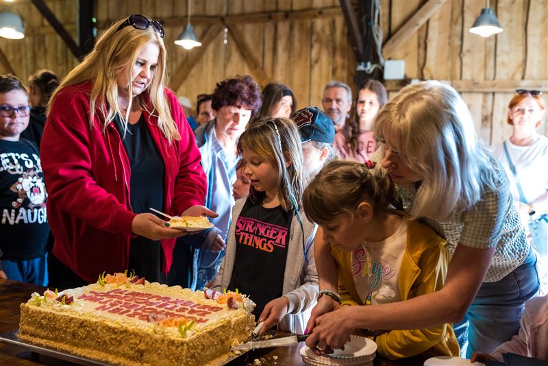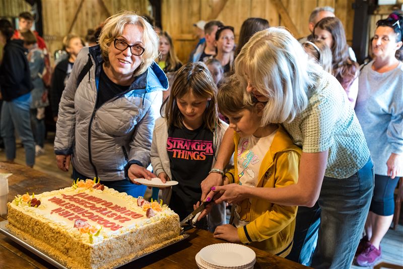 Imprezę otworzyły - dyrektor Powiatowego Centrum Pomocy Rodzinie w Sochaczewie Katarzyna Kajak oraz dyrektor Placówek Opiekuńczo-Wychowawczych Kamila Gołaszewska-Kotlarz, którym towarzyszyły starosta sochaczewski Jolanta Gonta i Aleksandra Siekiera dyrektor Poradni Psychologiczno-Pedagogicznej w Sochaczewie. Tuż po krótkim wstępie i życzeniach starosty skierowanych do przybyłych gości, zaprosiliśmy wszystkich do skosztowania fantastycznego pysznego tortu przygotowanego specjalnie na tę okazję.