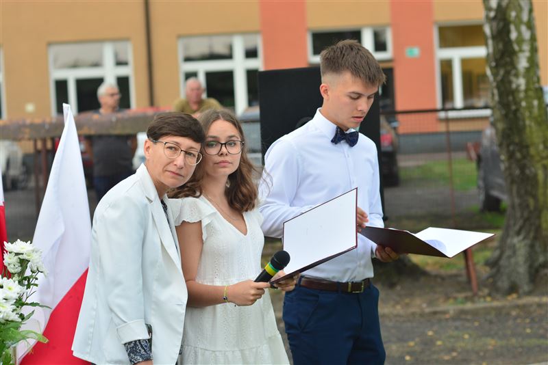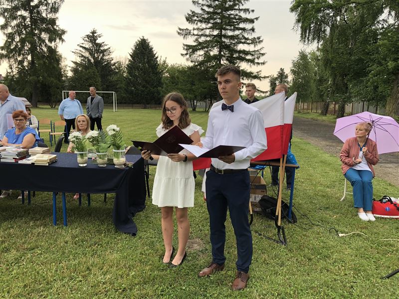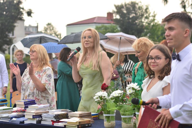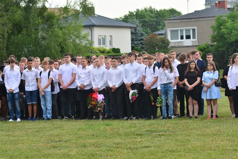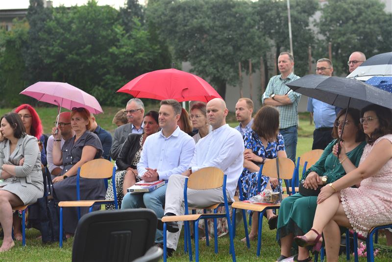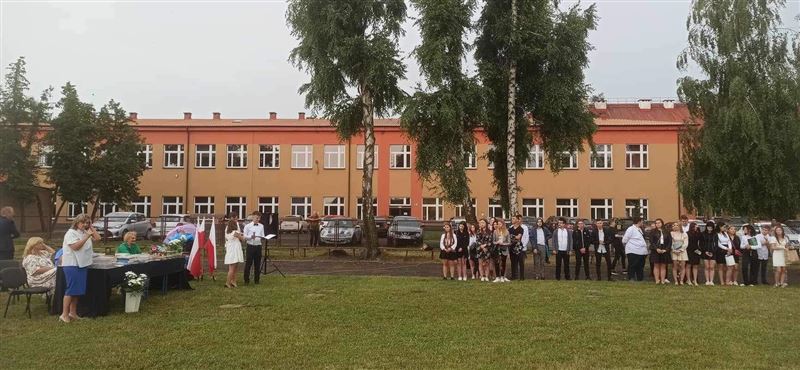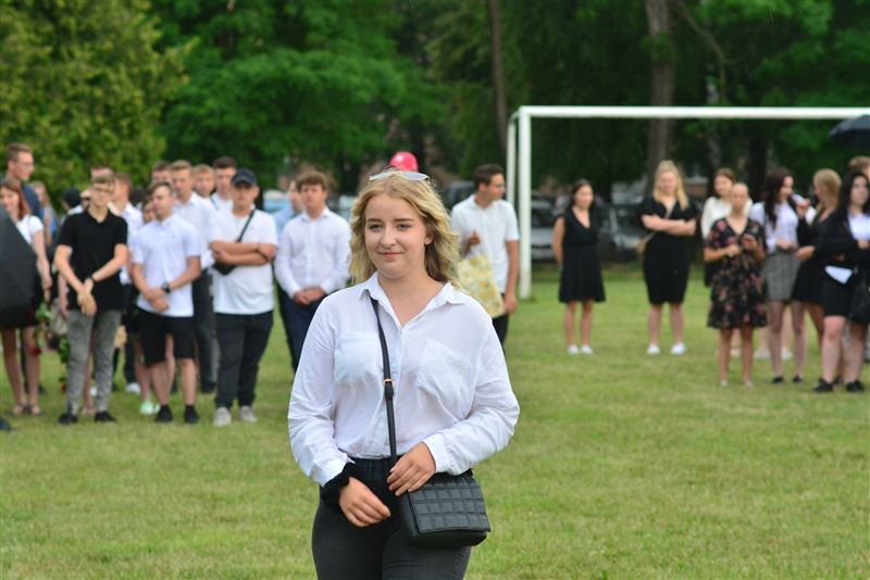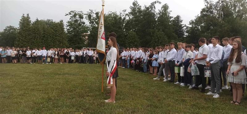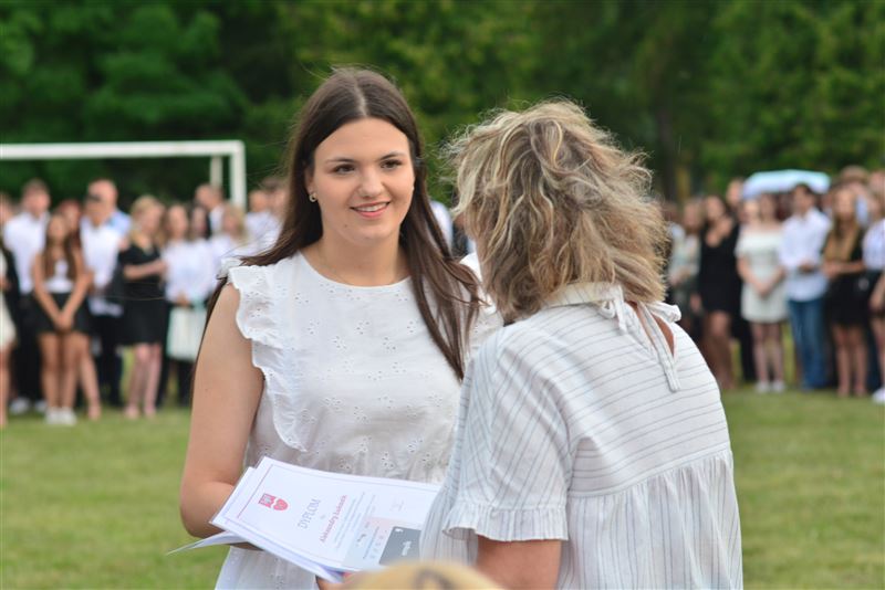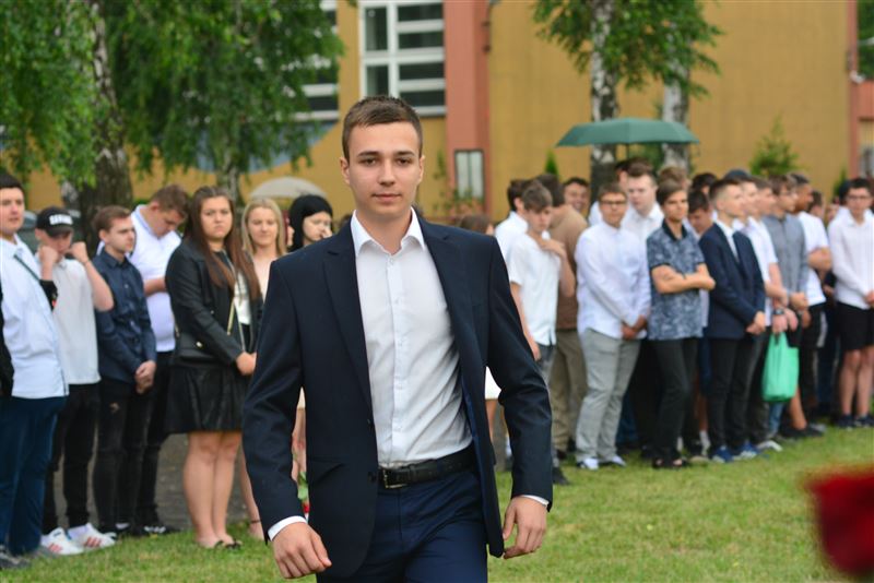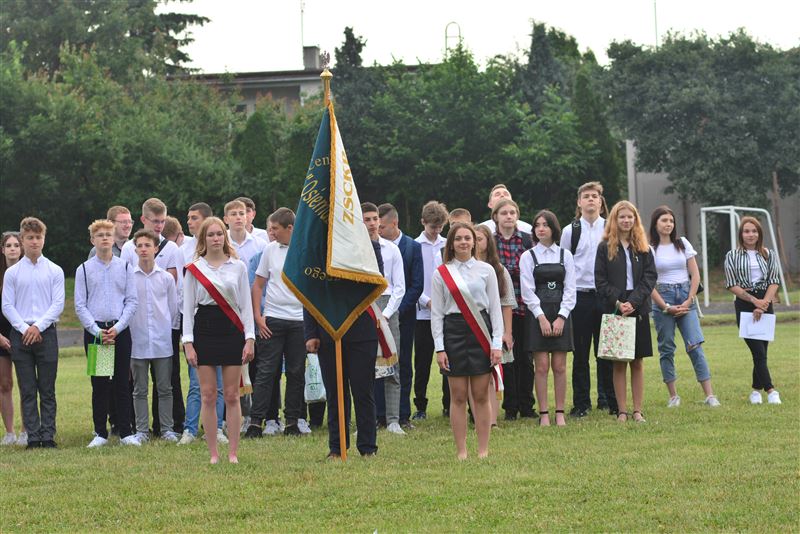 23 czerwca to dzień, na który już od początku miesiąca czekali uczniowie i w którym każdy z nich z radością przyszedł do szkoły, by odebrać wyniki swojej dziesięciomiesięcznej pracy. Punktualnie o 9.00 boisko szkolne zapełniło się odświętnie ubraną młodzieżą z liceum, technikum i ze szkoły branżowej. Przy dźwiękach werbli został wprowadzony sztandar szkoły. Następnie zgromadzeni – kadra kierownicza, zaproszeni goście, nauczyciele i uczniowie odśpiewali hymn państwowy. Po nim przyszedł czas na ciepłe słowa skierowane do młodzieży. Jako pierwsza zabrała głos dyrektor Julia Jakubowska, która podziękowała uczniom i nauczycielom za trud podjęty w minionym już roku szkolnym, pogratulowała uzyskanych wyników i życzyła dobrego, ale przy tym bezpiecznego wypoczynku w czasie wakacji. Również zaproszeni goście – przedstawicielka zarządu Cechu Rzemiosł Różnych Violetta Janiak i przewodnicząca Rady Rodziców Iwona Dymowska dołączyły się do życzeń. Panie wyraziły nadzieję, że wakacje będą dla wszystkich dobrym czasem, który pozwoli na odpoczynek, regenerację i nabranie sił na nowy rok szkolny.