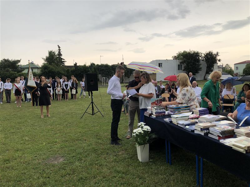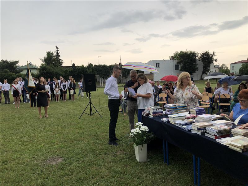 Zakończenie roku to uroczystość, która ma w miarę stały scenariusz. Jednak tym razem uległ on pewnej modyfikacji, w związku z pogodą. Na boisku szkolnym została wręczona część nagród, pozostałe w budynku szkolnym podczas spotkań z wychowawcami. Nagrodzonych książkami za bardzo dobre i dobre wyniki w nauce zostało 92 uczniów. Świadectwa z czerwonym paskiem otrzymało 20 uczniów (2 z liceum, 11 z technikum i 7 ze szkoły branżowej). Nagrodami starosty sochaczewskiego zostali nagrodzeni uczniowie, którzy w swoim typie szkoły uzyskali najwyższą średnią ocen – w liceum Aleksandra Łukasik (średnia 4,93), w technikum Błażej Słowiński (średnia 5,48) i w szkole branżowej Wiktoria Połeć (średnia 5,15). Nagrody dla najlepszych uczniów w zawodzie ufundowane przez Cech Rzemiosł Różnych otrzymało 3 mechaników pojazdów samochodowych, 2 cukierników i 2 fryzjerów. 9 uczniów z klas IVbt, IIIal i IIIbt uzyskało nagrodę za osiągnięcia sportowe – za 2 miejsce w XXV Mazowieckich Igrzyskach Młodzieży Szkolnej Licealiada 2023 w piłce ręcznej chłopców. Były też specjalne nagrody dla Rafała Banasiaka z 2et za wzorowe pełnienie funkcji łącznika z biblioteką szkolną i dla Agnieszki Lewandowskiej z 1ct za tytuł „Najlepszego Czytelnika” w roku szkolnym 2022/2023.