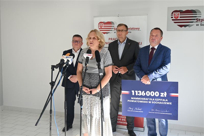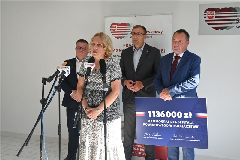 – Zakup nowego aparatu mammograficznego do Pracowni mammograficznej Zespołu Opieki Zdrowotnej Szpitala Powiatowego w Sochaczewie, to niezwykle ważna inwestycja, gdyż jest to inwestycja w zdrowie i życie człowieka, będzie on służyć wszystkim pacjentkom powiatu sochaczewskiego, korzystającym z usług szpitala. Będzie wykonywać badania profilaktyczne jak i te w trakcie leczenia czy kontrolne. Szczególnie mnie, jako kobiety ten zakup cieszy i dziękuję premierowi, jak również ministrowi Maciejowi Małeckiego za te środki, które dają możliwość jego sfinansowania – podkreślała podczas briefingu starosta Jolanta Gonta.