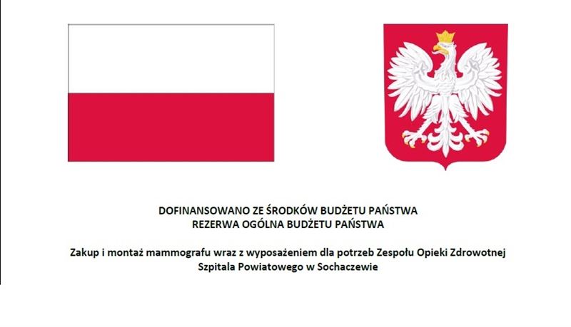 Jak poinformował na biefingu prasowym, który odbył się w szpitalu 18 sierpnia, wiceminister Aktywów Państwowych Maciej Małecki, pieniądze na zakup mammografu pochodzą z rezerwy ogólnej budżetu państwa. Premier Mateusz Morawiecki zdecydował o przekazaniu kwoty w wysokości 1 136 000,00 zł właśnie na sprzęt do badania mammograficznego dla mieszkanek powiatu sochaczewskiego. Szpital jest w trakcie wyłaniania wykonawcy na dostawę aparatu do mammografii.