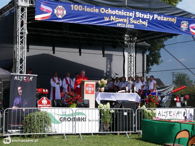 Uroczystości, które zaplanowano na terenie OSP poprzedziła msza święta polowa odprawiona na placu przy strażnicy, podczas której poświęcono i przekazano sztandar jednostce z Nowej Suchej. W tak ważnym wydarzeniu nie mogło zabraknąć rysu historycznego, ukazującego działalność strażaków, wręczono też odznaczenia, były wystąpienia okolicznościowe, gratulacje i życzenia oraz odsłonięcie pamiątkowej tablicy. Uroczystość uświetnił występ m.in. chóru Cantabile, Bolimowskiej Orkiestry Dętej a także obecność przybyłych pocztów sztandarowych. Po części oficjalnej na uczestników czekały liczne piknikowe atrakcje, w tym tort urodzinowym dmuchańce dla najmłodszych, muzyka na żywo z potańcówką czy też smaczny poczęstunek.