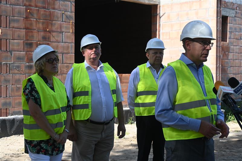 Na placu budowy obecny był także Tadeusz Głuchowski, wicestarosta, któremu szczególnie bliskie są inwestycje i przedsięwzięcia związane z oświatą. - Obiecana rozbudowa szkoły sięga wielu lat wstecz. Jestem radnym wszystkich sześciu kadencji, w pierwszej byłem przewodniczący Komisji Oświaty. Przyjeżdżaliśmy wówczas tu przekonywać nauczycieli dwóch szkół, że ich połączenie w jedną będzie z korzyścią dla wszystkich. Został wtedy wykonany obszerny projekt z halą sportową. Nigdy go nie zrealizowano. Kolejne Zarządy Powiatu próbowały, ale środków było mało a może i nie byli operatywni jak nasz Zarząd Powiatu, by gdzieś zabiegać o środki zewnętrzne. Sami nie bylibyśmy w stanie udźwignąć takiej inwestycji. Zainteresowaliśmy pomysłem ministra Macieja Małeckiego. Dostaliśmy ogromne wsparcie, w postaci środków rządowych w wysokości ponad 7 milionów złotych, za co bardzo dziękujemy – podkreślał T. Głuchowski. Wskazał też, że do końca października br. zakończony zostanie drugi etap, pozostanie trzeci – typowo wykończeniowy. – W kwietniu szkoła będzie się przenosić do nowego obiektu, a jak się uda to może młodzież w tym właśnie budynku napisze już nową maturę – podsumował wicestarosta.