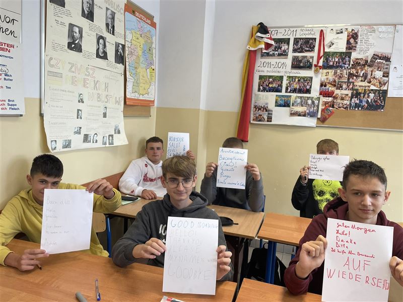 26 września, na kilku godzinach lekcyjnych, nauczycielki języka niemieckiego M. Andrzejewska, R. Cis i M. Szczepańska zorganizowały dla swoich uczniów zajęcia, poprzez które chciały zachęcić młodzież do intensywniejszej nauki języków i przybliżyć jej ideę różnorodności językowej, która stanowi kluczowy czynnik bogatego dziedzictwa kulturowego naszego kontynentu. Uczniowie obejrzeli prezentację multimedialną pt. „Dlaczego powinniśmy się uczyć języków obcych?”, a także mogli sprawdzić swoje predyspozycje językowe, wziąć udział w quizie o językach obcych, w grach i zabawach językowych oraz pośpiewać w języku niemieckim. Prawdziwym wyzwaniem okazały się łamańce językowe i rozpoznawanie języka po usłyszeniu lub przeczytaniu kilku zdań.