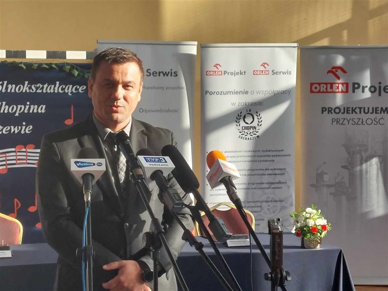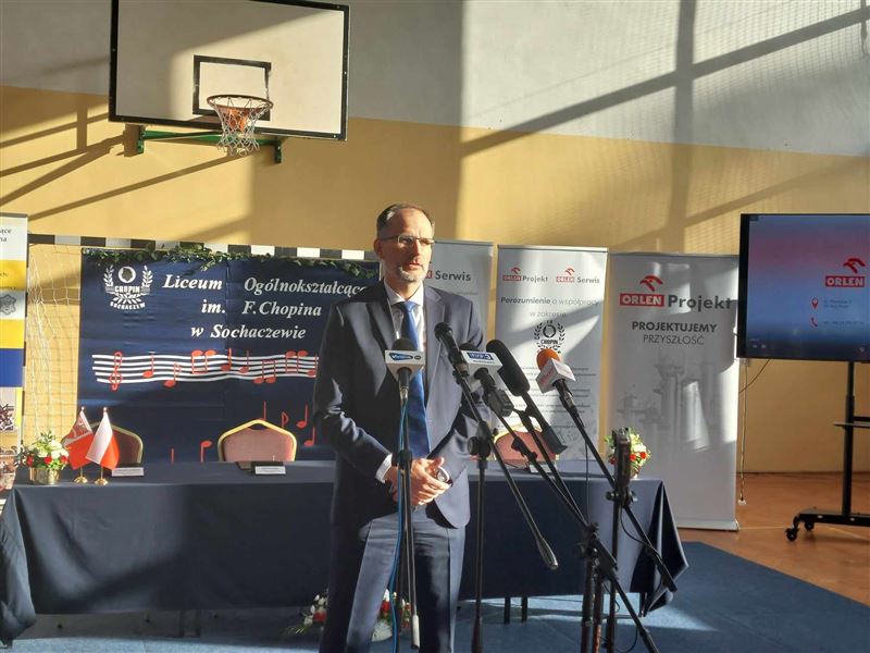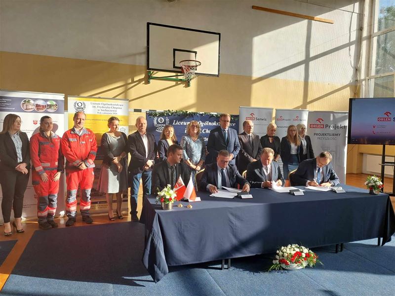 Kolejna szkoła powiatowa nawiązała współpracę ze spółkami Grupy Kapitałowej Orlen S.A. We wtorek, 3 października br. uroczyście podpisano porozumienie pomiędzy Liceum Ogólnokształcącym im. Fryderyka Chopina w Sochaczewie a dwoma spółkami: Spółką Orlen Projekt i Orlen Serwis. Uroczystość rozpoczęto briefingiem prasowym z udziałem wiceministra Aktywów Państwowych Macieja Małeckiego, starosty Jolanty Gonta, członków Zarządu Powiatu i społeczności szkolnej. Współpraca ma zainspirować uczniów do podjęcia kształcenia na uczelniach wyższych o profilu technicznym oraz związania przyszłych planów z zatrudnieniem w spółkach GK ORLEN S.A. Porozumienie zawarto na dwa lata.