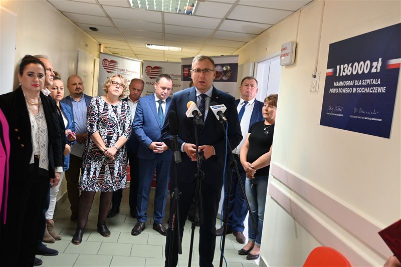 Wiceminister Aktywów Państwowych Maciej Małecki, który w sierpniu przekazywał na ręce starosty i dyrektora szpitala promesę uczestniczył również w czwartek, 5 października w przekazaniu do użytkowania nowego sprzętu, który już wkrótce będzie użytkowany, po odpowiednim szkoleniu personelu medycznego i wykonaniu prób testowych oraz certyfikacji. Warto nadmienić, iż minister Małecki od początku angażował się w pozyskanie tej specjalistycznej aparatury. - Cieszę się, że w zakupie tak nowoczesnego sprzętu pomogła dotacja rządowa. Teraz panie z powiatu sochaczewskiego nie będą musiały jeździć poza Sochaczew, by wykonać te bardzo ważne badanie. Rak piersi jest chorobą, z którą można walczyć i mam nadzieję, że ten mammograf pozwoli wygrać wiele batalii o życie mamy, babci, żony, siostry. Życzę, by wszystkie panie, które przyjdą się zbadać usłyszały dobre informacje od lekarzy – mówił m.in. w swoim wystąpieniu minister Maciej Małecki.