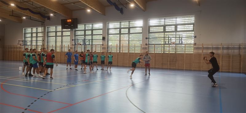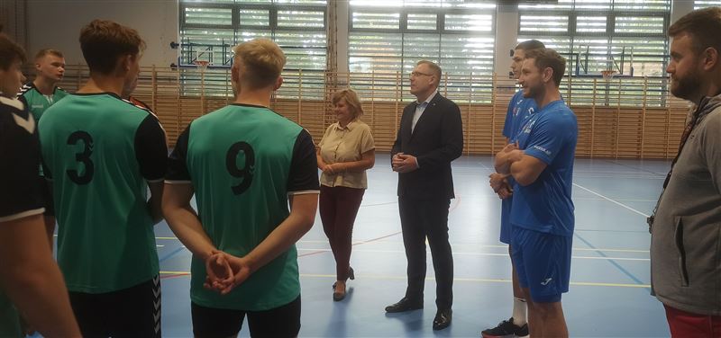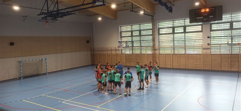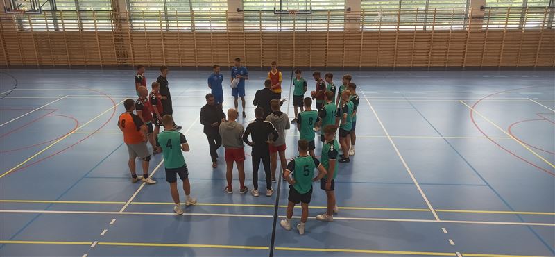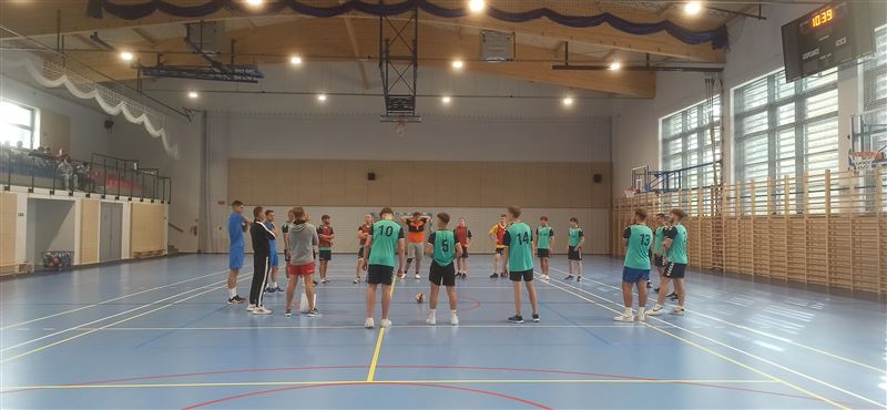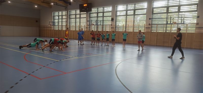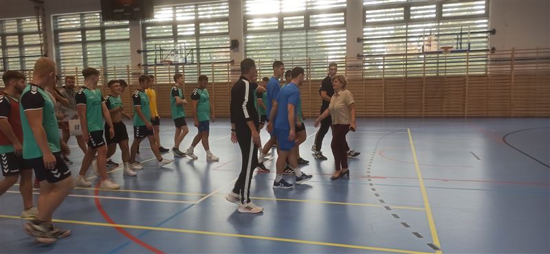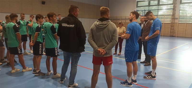 Gości powitała dyrektor szkoły Julia Jakubowska. Z inicjatywą zorganizowania treningu piłki ręcznej z piłkarzami odnoszącymi sukcesy w klubie i w reprezentacji Polski wystąpili uczniowie klasy 5bt, którzy stanowią trzon reprezentacji szkoły. Po zajęciach z siatkarką Małgorzatą Glinką–Mogentale, które odbyły się 22 września, zwrócili się z prośbą do ministra Macieja Małeckiego o zorganizowanie spotkania ze szczypiornistami. Ich życzenie spełniło się po niespełna dwóch tygodniach. Drużyna z Osiemdziesiątki odbyła trening z profesjonalistami. Michał Daszek i Filip Michałowicz, najpierw obserwowali umiejętności chłopaków w sparingu, a następnie udzielali porad i ćwiczyli z zawodnikami elementy gry, w tym rzuty wolne i rzuty karne. Każdy zawodnik otrzymał instruktaż, co robi dobrze, a nad czym przydałoby się jeszcze popracować i jakie wykonywać ćwiczenia, by poprawić technikę. Z całą pewnością były to bardzo przydatne i motywujące zajęcia. Tym bardziej, że zawodnicy drużyny, która regularnie gra w Lidze Mistrzów, chwalili swych młodszych kolegów za umiejętności i byli zdumieni, że reprezentują taki poziom, trenując tylko raz czy dwa razy w tygodniu.