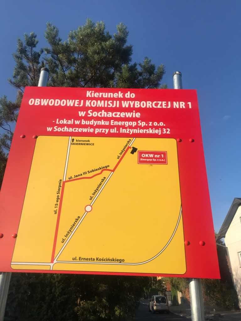 Część dojazdu do lokalu wyborczego znajduje na terenie budowy, stąd prosimy o zachowanie ostrożności ze względu na wystające studzienki kanalizacyjne, które oznakowane są tzw. "ubotami" - znak U-21. Na drogach dojazdowych tj. skrzyżowaniu drogi powiatowej – ul. Inżynierskiej i ul. Kościńskiego oraz drogi wojewódzkiej 705 i ul. Sobieskiego znajdują się tablice informacyjne, prosimy się do nich stosować.
