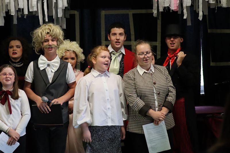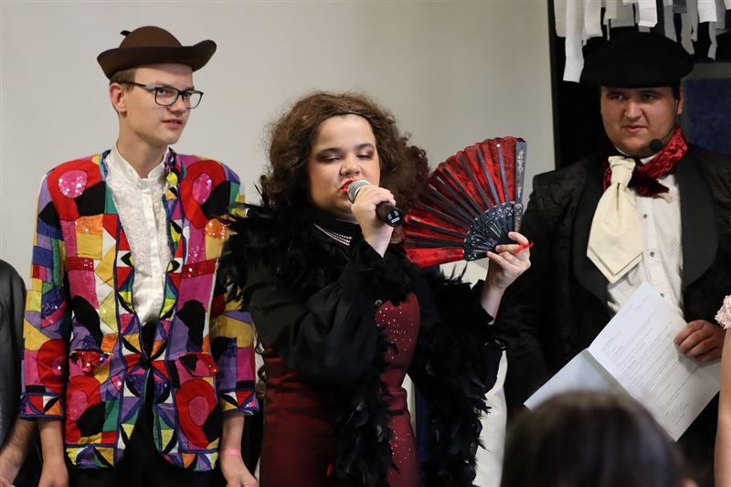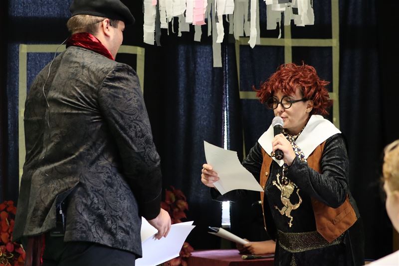 Dwadzieścioro uczniów przygotowało wyjątkowy program artystyczny pod kierunkiem opiekunów szkolnego koła teatralnego oraz muzycznego. Składał się z dwóch połączonych ze sobą części: odegranych przez uczniów scenek z lekcji szkolnych oraz przedstawienia teatralnego według „Zemsty” Aleksandra Fredry.
