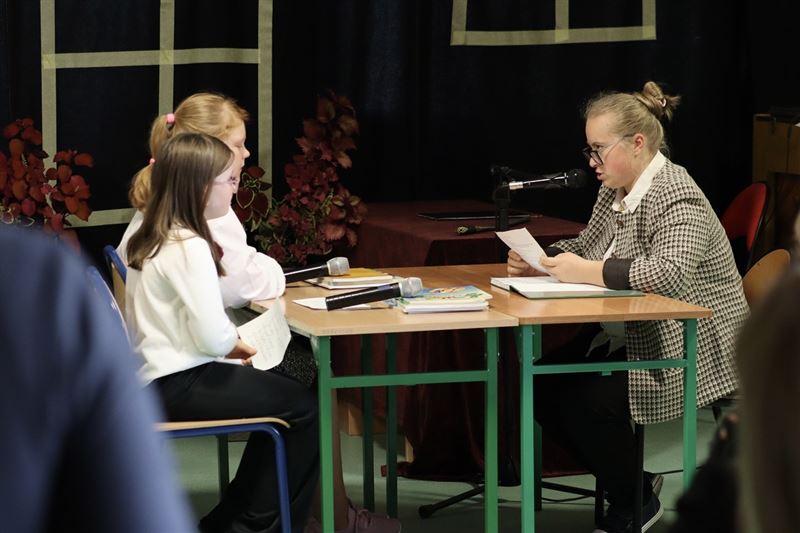 Podczas zainscenizowanej lekcji języka polskiego przypomniano, że rok 2023 został ogłoszony przez Sejm Rzeczypospolitej Polskiej między innymi rokiem Aleksandra Fredry. Pojawiły się tu najważniejsze informacje o pisarzu oraz wybrane wiersze, które Fredro napisał dla dzieci. Następnie zastosowano płynne przejście do sztuki teatralnej „Zemsta” w wykonaniu naszych wspaniałych uczniów!