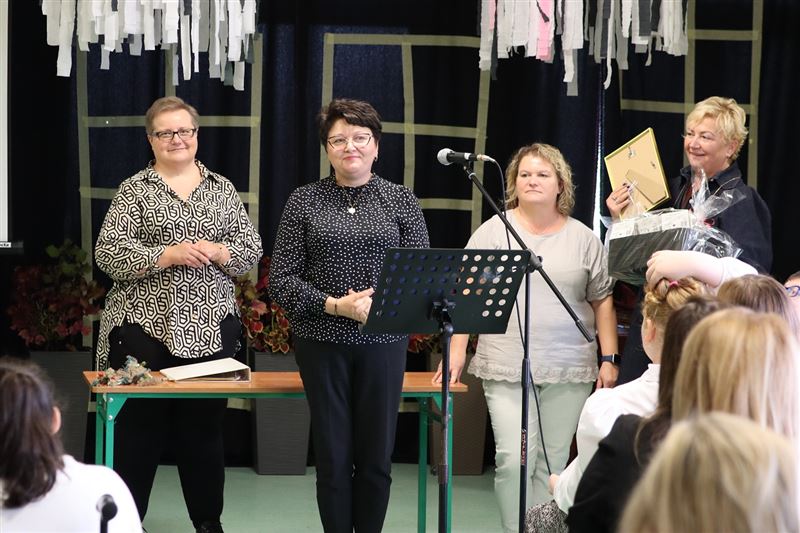 Dyrektor Renata Karaś wraz z wicedyrektor Eweliną Kopeć złożyły wszystkim nauczycielom i pracownikom szkoły podziękowania, gratulacje i najlepsze życzenia z okazji Dnia Edukacji Narodowej, do których dołączone były ozdobne karty i zabawne niespodzianki w postaci fotografii, które wykonano każdemu z osobna podczas niedawnych obchodów Dnia Uśmiechu. Wiele osób otrzymało również gratyfikację w postaci Nagrody Dyrektora.