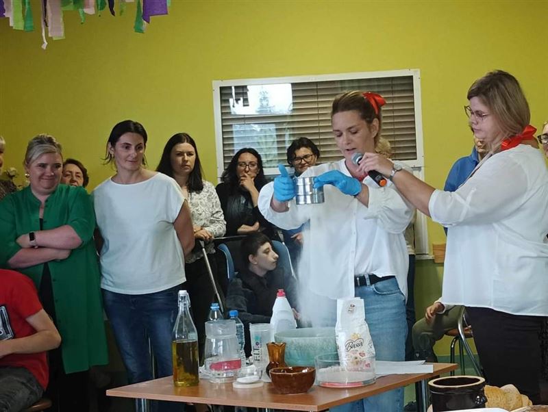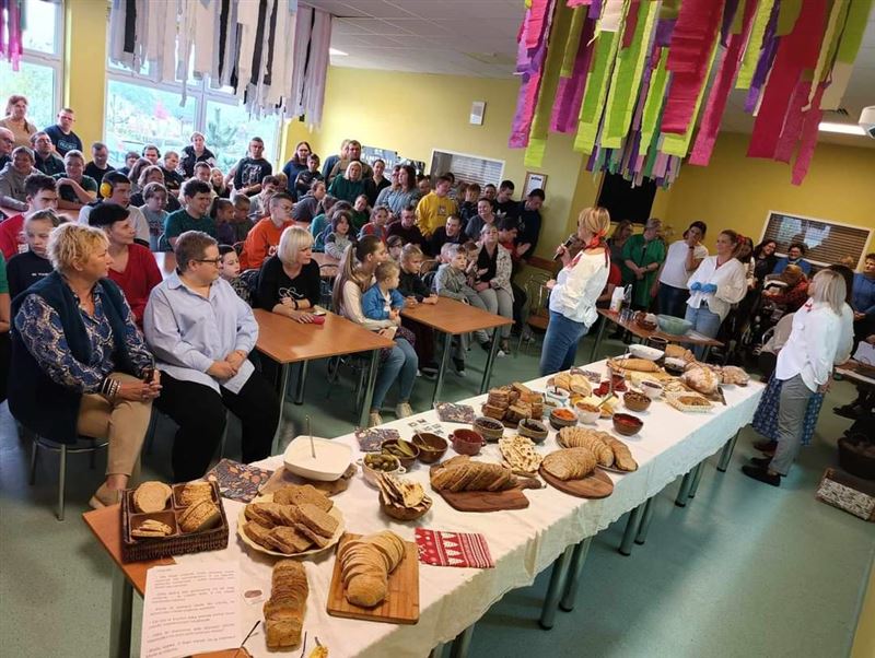 Kolejnego dnia, czyli 24 października cała społeczność szkolna uczestniczyła w warsztatach „Dzień Chleba”. Celem spotkania było przybliżenie uczniom, w jaki sposób powstaje chleb, jaką symbolikę za sobą niesie. Pokazano, jakie pieczywo jada się w innych częściach świata. Panie ze szkolnego Koła Wolontariatu upiekły chleb, przygotowały pasty i konfitury, które można było spróbować. Przeprowadzono doświadczenia z użyciem drożdży, które wykorzystywane są do wypieku chleba. Dzięki tym eksperymentom zgłębiliśmy wiedzę na temat pieczywa. Teraz uczniowie mogą być ekspertami w domowych wypiekach.