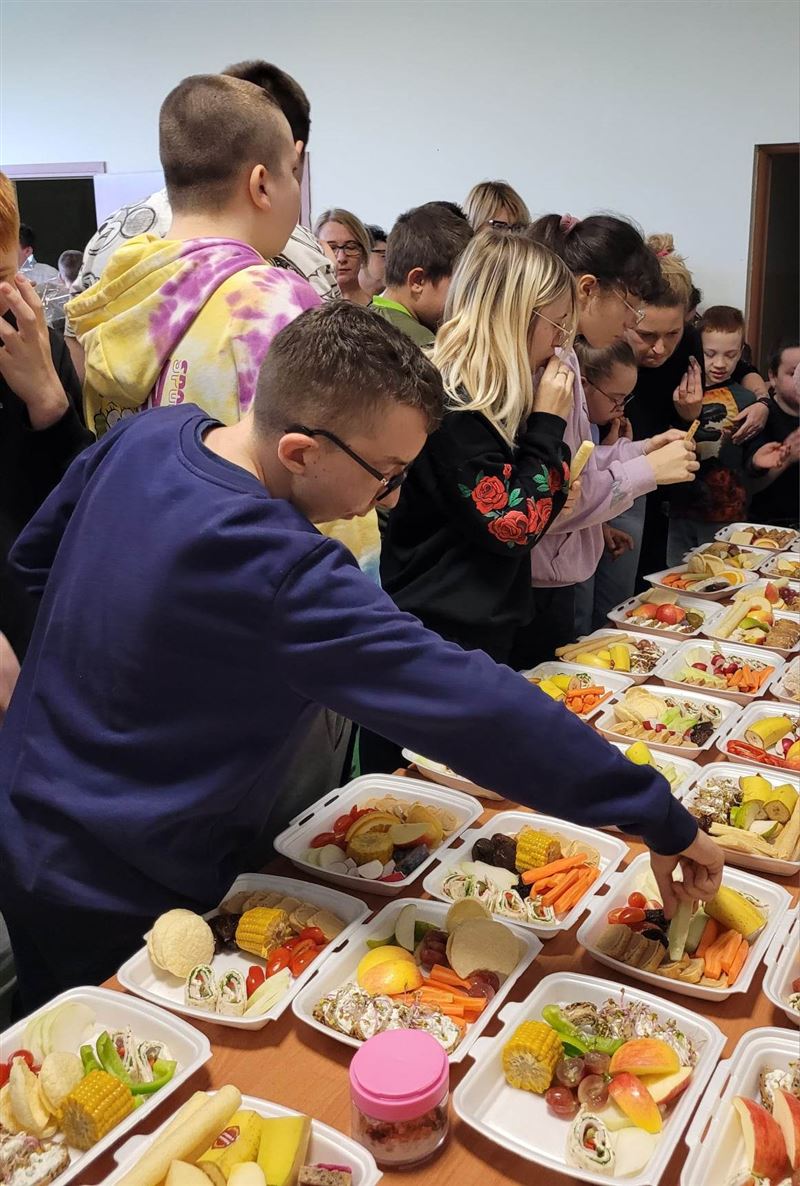 W nawiązaniu do zaleceń NIZP, Koło Prozdrowotne zaprezentowałouczniom propozycję przygotowania zdrowego posiłku w pudełku śniadaniowym. Dzieci mogły nie tylko zobaczyć, ale także skosztować pełnowartościowych i urozmaiconych przekąsek, m.in. kanapek z hummusem, pastami warzywnymi, masłem orzechowym, jogurtu naturalnego z mussli oraz warzyw i owoców.