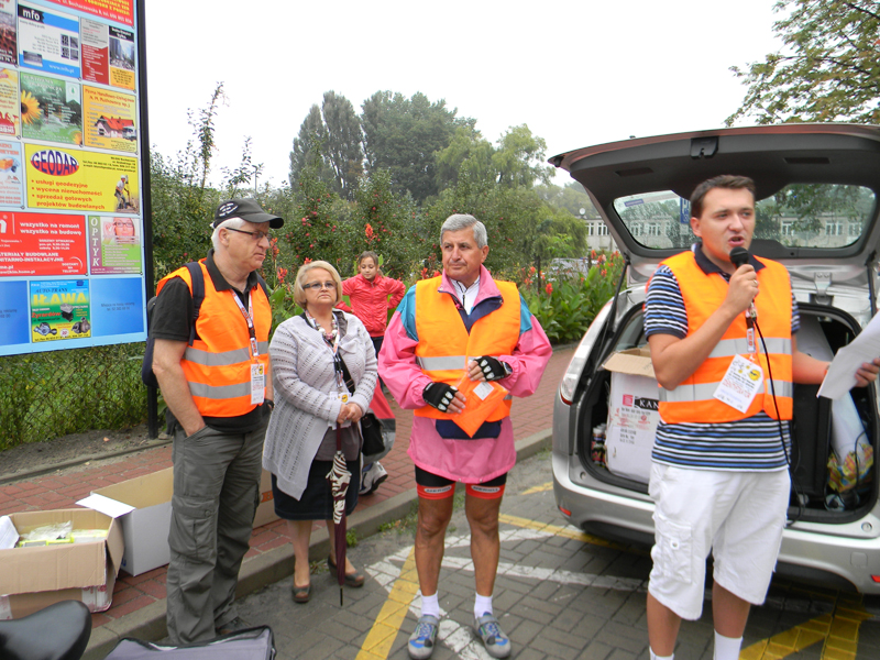 Choć sobotni poranek przywitał nas letnim, ciepłym deszczem na starcie rajdu, który przewidzieliśmy przed budynkiem Starostwa Powiatowego w Sochaczewie przybyło naprawdę wiele osób, które lubią rekreacyjnie jeździć rowerem po powiecie. Przed startem rozdano uczestnikom identyfikatory, kamizelki i gadżety odblaskowe a wszystkich przywitał wicestarosta Janusz Ciura, wójt gminy Młodzieszyn Joanna Szymańska a także komandor rajdu Ryszard Nowakowski. Wicestarosta przypomniał początki rajdów rowerowych organizowanych przez Starostwo Powiatowe, które wiele lat temu zapoczątkował Janusz Szostak, a dziś kontynuuje z powodzeniem (choć obecnie pod inną nazwą) - Wydział Promocji Starosta z dyrektorem Marciem Podsędkiem na czele.
