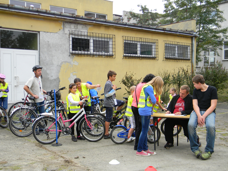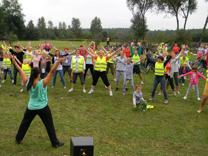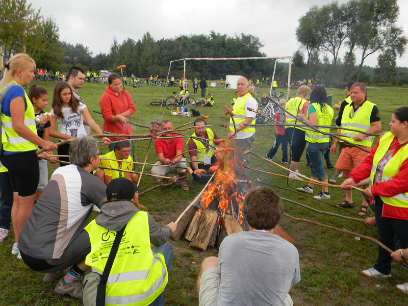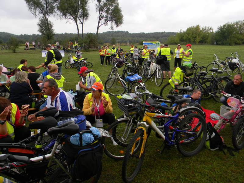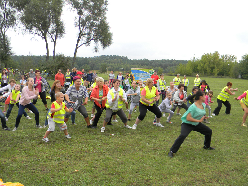 Uczestnicy rajdu zmierzali na piknik do Gimnazjum w Młodzieszynie przygotowany przy dużej pomocy dyrektora tejże szkoły Dariusza Kosińskiego. A tu czekało ognisko, wiele atrakcji i zawodów sprawnościowych, do których ustawiały się duże kolejki uczestników chcących spróbować swoich sił, chociażby w slalomie rowerowym, rzucie do kosza czy badmintonie. Niekwestionowaną atrakcją było wspólne tańczenie zumby z instruktorką Anną Baśkiewicz. Ponadto, rozdawano jogurty ufundowane przez firmę Bakoma oraz słodycze z firmy z Mars Polska. Organizatorzy rajdu przygotowali wiele nagród dla uczestników, była m.in. loteria, nagrodzono najmłodszych uczestników rajdu, jak i najstarszych oraz najliczniejszą rodzinę i osoby, które zgłosiły najwięcej uczestników na rajd.