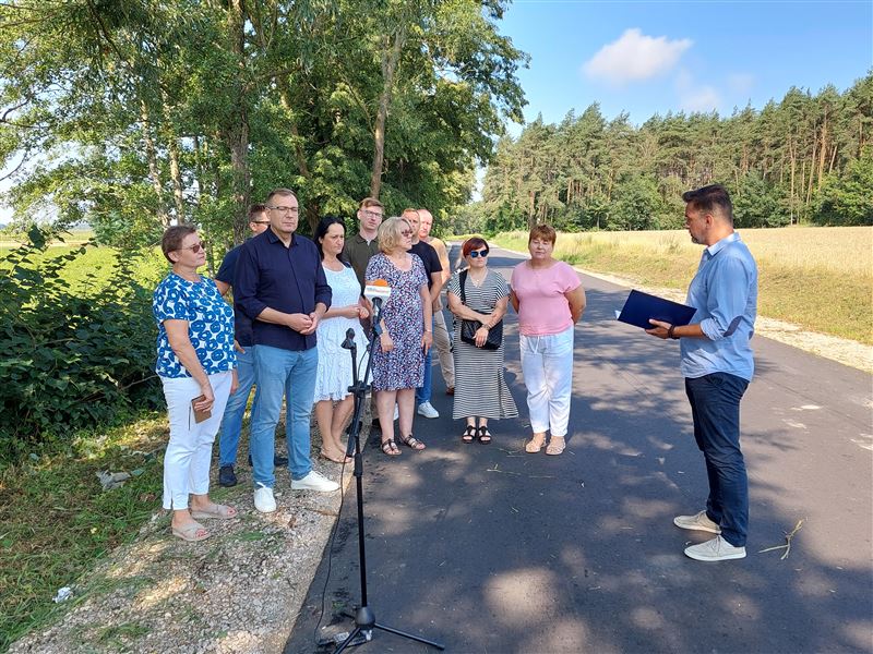 Radości z udanej inwestycji nie kryli też obecni podczas spotkania członkowie Zarządu Powiatu – Bożena Samson i Filip Kopka, wspólnie podkreślając, że to zadanie stanowi kolejny dowód na to, że zgoda buduje, a konstruktywny dialog prowadzi do realizacji wielu potrzebnych inwestycji na rzecz mieszkańców naszej Małej Ojczyzny. W spotkaniu na drodze uczestniczyli też m.in.: radny sejmiku wojewódzkiego Michał Orliński, wójt gminy Młodzieszyn Monika Pietrzyk, radna powiatowa Anna Orlińska, radne gminy Młodzieszyn – Maria Czerwińska i Bogumiła Orlińska, a także Marta Cuber-Botorowicz z Powiatowego Zarządu Dróg i wykonawca prac Marcin Głuchowski, firma DROG-BET.