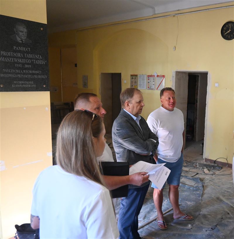We wtorek, 30 lipca podsumowano pierwszy z dwóch etapów prac, jak podkreśla Tadeusz Głuchowski dyrektor Wydziału Inwestycji, Mienia i Zamówień Publicznych w Starostwie – prace są realizowane z należytą starannością, przebiegają zgodnie z harmonogramem, a nawet w niektórych zakresach są nadwykonania. Firma NSO s.c. gwarantuje zakończenie prac w terminie tj. do końca sierpnia. Nie ma więc zagrożenia niezakończenia na czas, co w przypadku placówki oświatowej jest niezwykle ważne. Od września wróci użytkowanie przestrzeni.