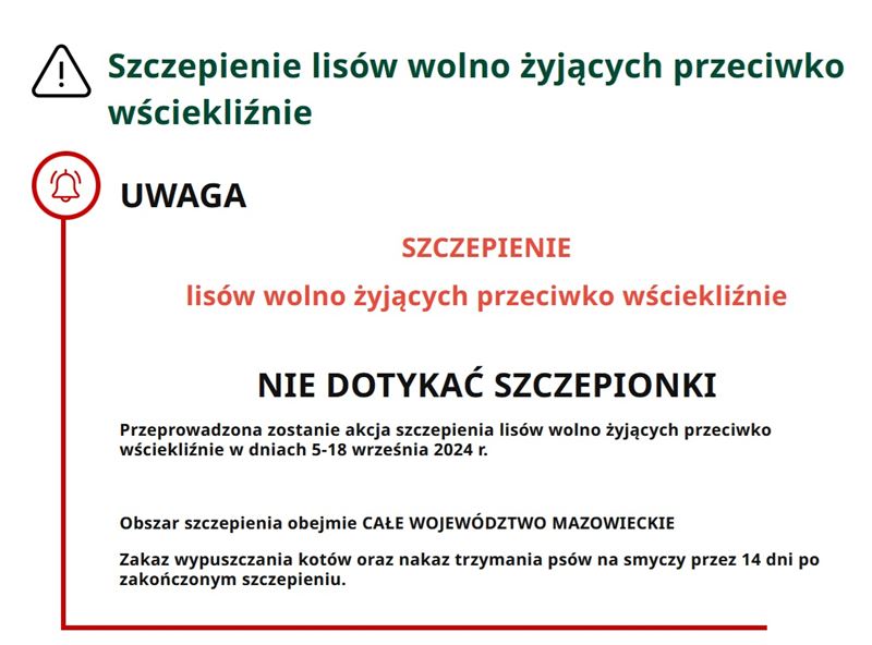 Po zakończeniu akcji szczepień, jeszcze przez dwa tygodnie należy zachować ostrożność podczas wyprowadzania zwierząt. Każdy ewentualny kontakt naszych czworonogów ze szczepionką należy zgłosić lekarzowi weterynarii. Jeśli dojdzie do kontaktu człowieka z preparatem, konieczny jest kontakt z lekarzem.