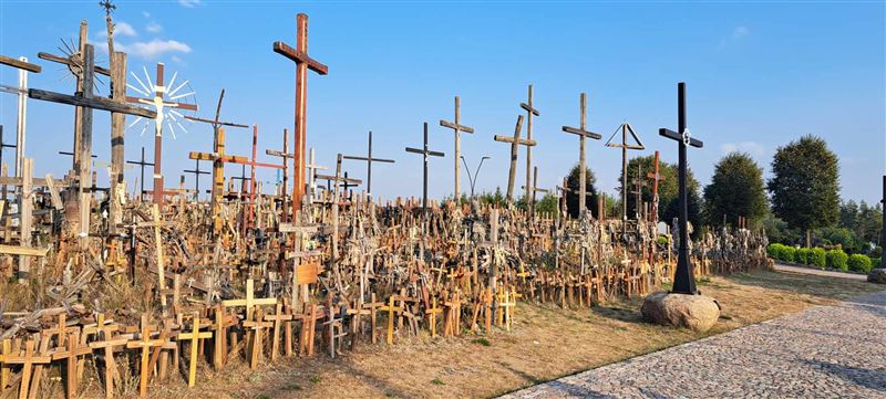 Ostatnim i wyczekiwanym punktem było odwiedzenie Sanktuarium Świętej Wody w Wasilkowie i Góry Krzyży. Znajduje się tutaj źródełko świętej wody, która swoją mocą uzdrawiała chorych. My również w miarę możliwości zabraliśmy wodę ze sobą, modląc się o zdrowie dla siebie i swoich bliskich. Miejsce to wywołało w nas duże wzburzenie i wzruszenie. Tysiące krzyży wotywnych z różnymi prośbami wzbudziło łzy w naszych oczach. Nasze też tam zawisły z prośbami wypisanymi po bokach i z ufnością ich spełnienia.