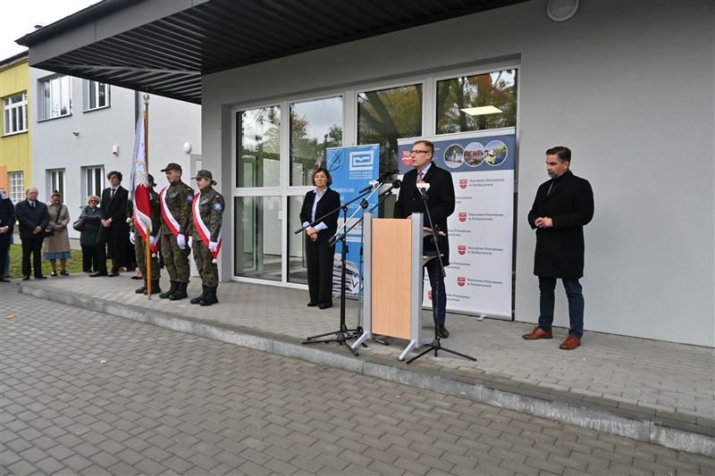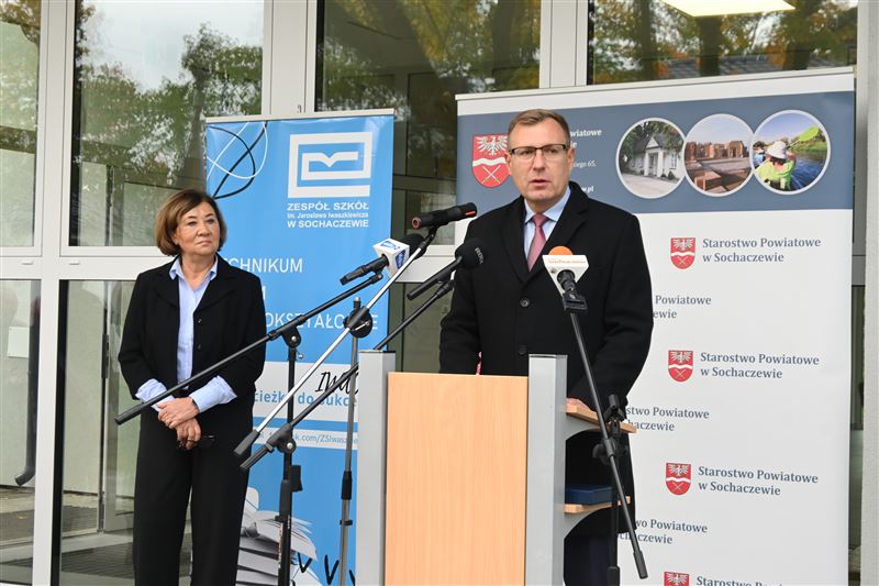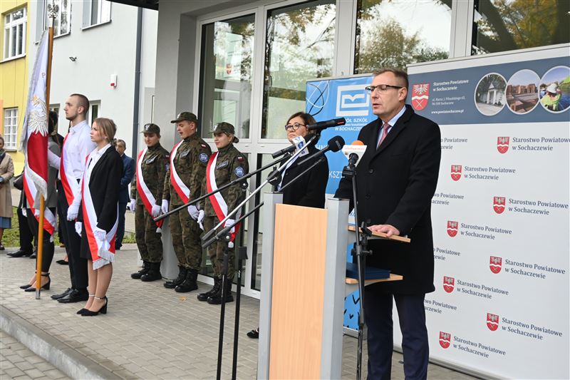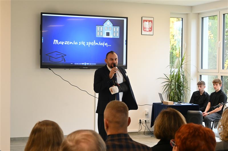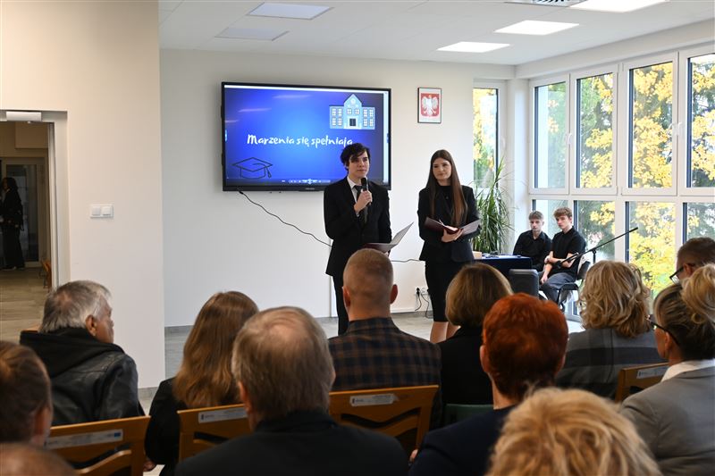 - Ta inwestycja została zrealizowana, by stworzyć wam jak najlepsze warunki do nauki. Bardzo cieszę się, że udało nam się wykonać ją w dość szybkim tempie, a społeczność szkolna może już przebywać razem, w jednym budynku. Widząc uśmiech na twarzach młodzieży, rady pedagogicznej i pracowników szkoły, utwierdzam się w przekonaniu, że było warto. Niech nowe warunki nauki pójdą w parze z jeszcze wyższym poziomem kształcenia, a ja będę mogła wręczać jeszcze więcej stypendiów za wyniki w nauce, co byłoby dla mnie wielką radością i zaszczytem – mówiła starosta Jolanta Gonta.