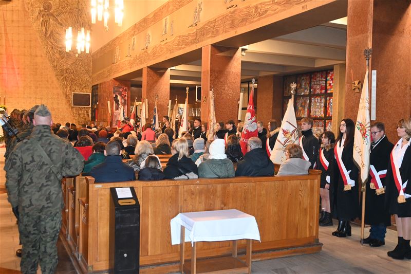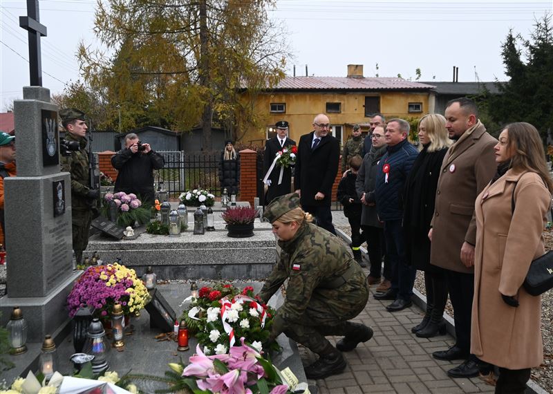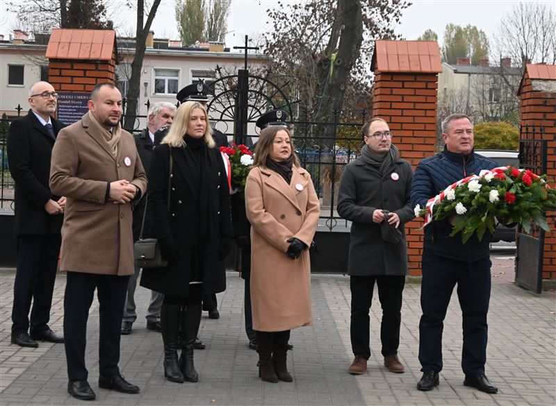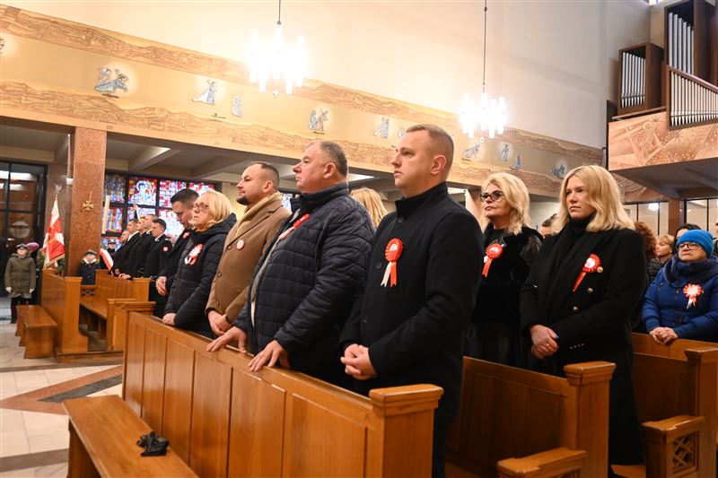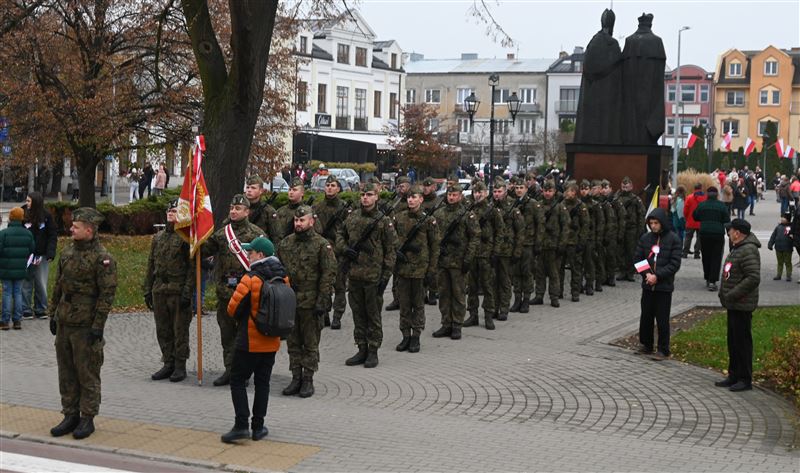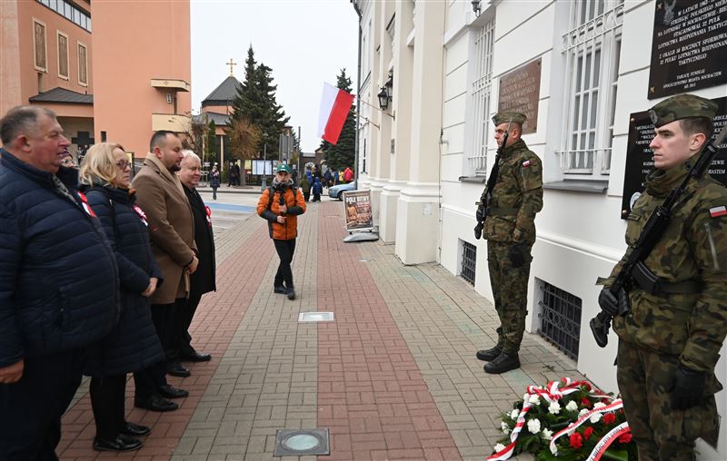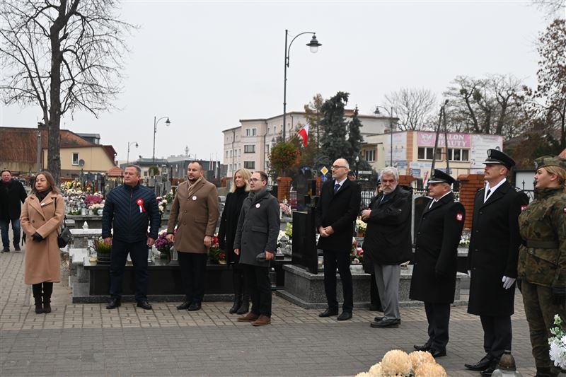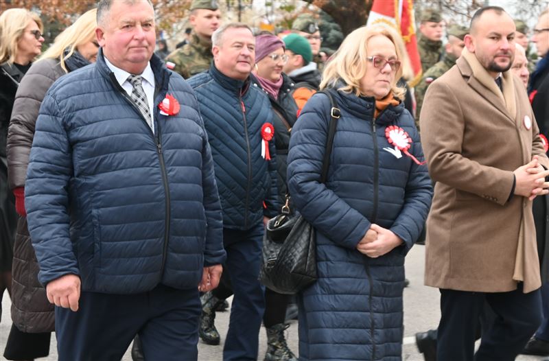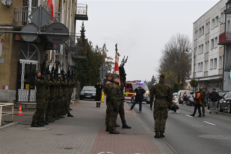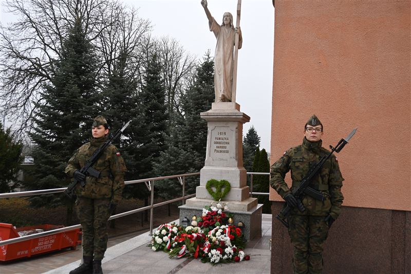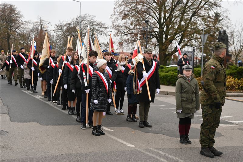 Burmistrz miasta Daniel Janiak odebrał od harcerzy symboliczny Ogień Niepodległości, który ustawiono przed popiersiem Piłsudskiego. Zebrani mieszkańcy i samorządowcy odśpiewali hymn Polski, wciągnięto flagę na maszt. Były przemówienia okolicznościowe gości, przypominające o patriotyzmie, wolności i obronie polskiej tożsamości i wiary. Odczytano apel pamięci, była salwa honorowa.